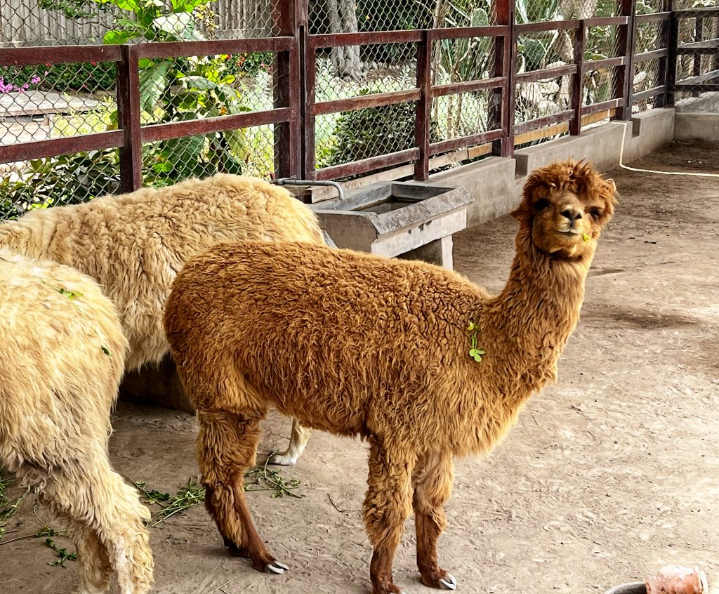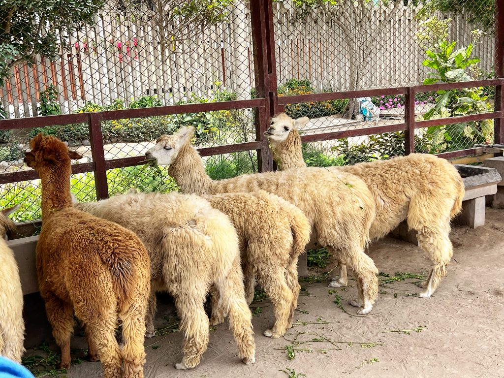At the site, we saw two unique South American animals. The guide mentioned it happened to be their lunchtime, so they paid no attention to us. The two light-colored ones turning their heads on the left are llamas, while the one on the right is an alpaca. Alpacas are smaller in size compared to llamas, with shorter faces. He seemingly says, “what are you looking at?”