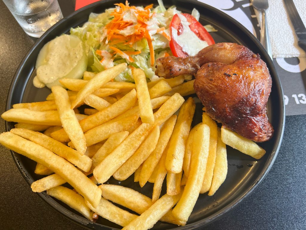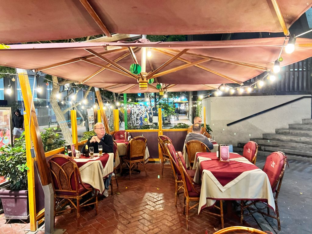 Later, I took an Uber back to a rotisserie chicken restaurant near the hotel for lunch. PJG was feeling much better and couldn’t wait to “escape prison,” as he called it, meeting me at the restaurant and even sneaking a few of my fries. In the afternoon, we went together to a restaurant that looked quite unique, ordered two cups of coffee, and I also had an ice cream. For dinner, we kept it simple and ate at a place near the Airbnb.