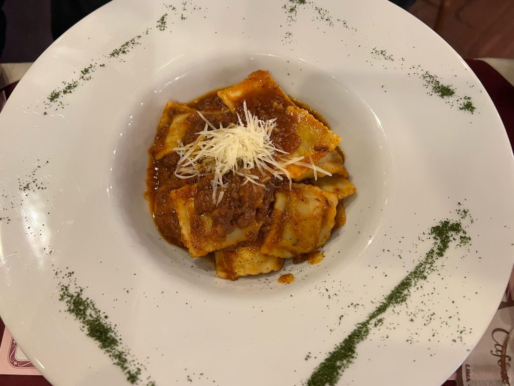简单的晚饭,左边的是海鲜炒饭,右边的是意大利饺子 – For the simple dinner, the dish on the left was seafood fried rice, and on the right was Italian Ravioli.