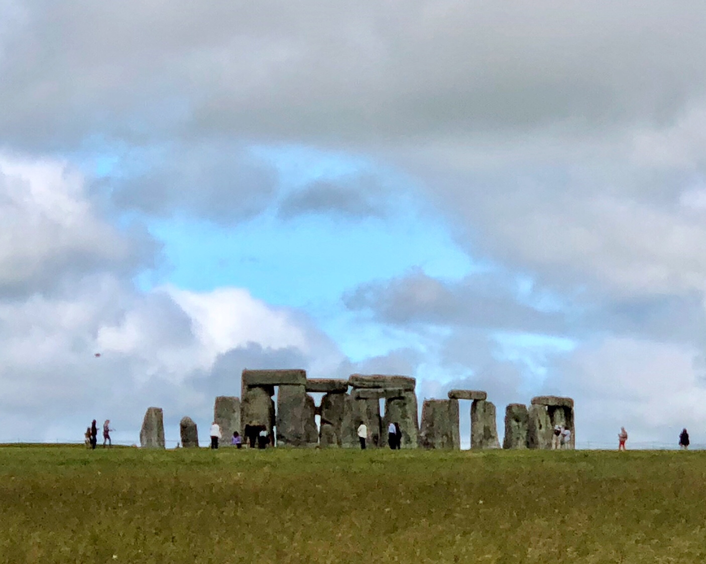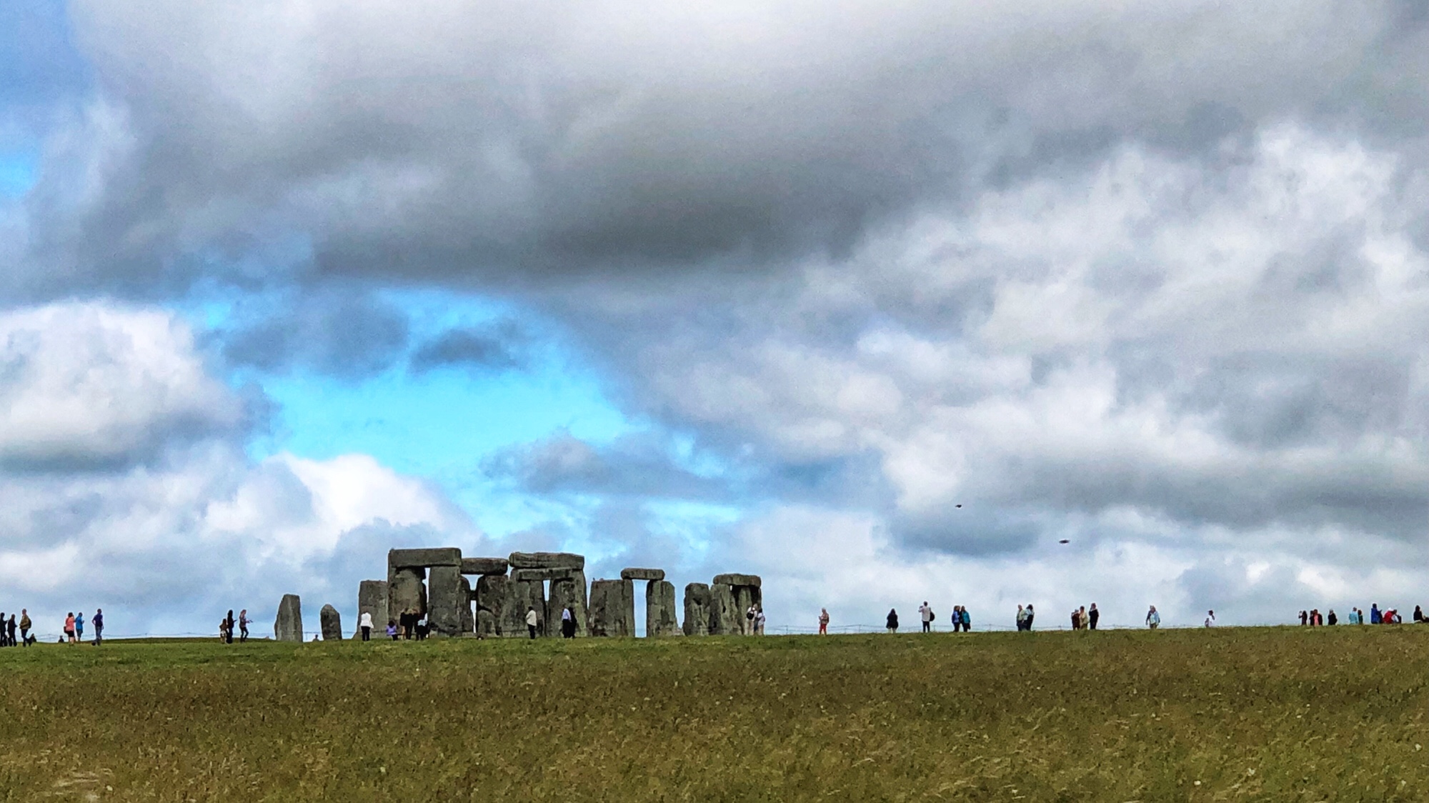 我俩快到目的地的时候,在路上就能很清楚的看到了巨石阵,真的是很壮观。到了售票处,我一看两个人需要40英镑,真的是太贵了啊,花了门票钱也不就是近了了几百米看吗!?难怪网上很多人说真的不需要花门票钱去看。所以我果断的决定不进去看, 哈哈哈哈 😂😂😂😄😄   然后我俩开车再次路过,我就拍下了上面和下面的照片 (照片上显示的比较小因为手机的相机都是偏广角镜头,其实人眼看的话还是很近的。)还有另外一个办法就是可以把车停在卖门票的地方的停车场里(停车是免费的),然后沿着A303走,就可以走到可以很好的远观巨石阵的地方。话说James的父亲在1949年和James在1968年来这里的时候是可以走上前去并亲手碰触到巨石阵的,现在即使花了门票也是有围栏不能靠近的。