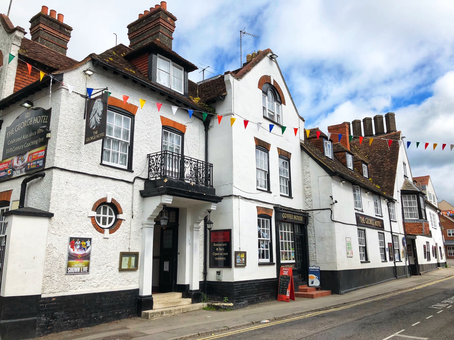 第二个顺路停留的地方是在埃姆斯伯镇里(Amesbury )的乔治旅店- George’s Hotel 。PJG的父亲在1949年的旅行时在这里住过。据旅店里的工作人员说,这栋房子已经有700多年的历史了。