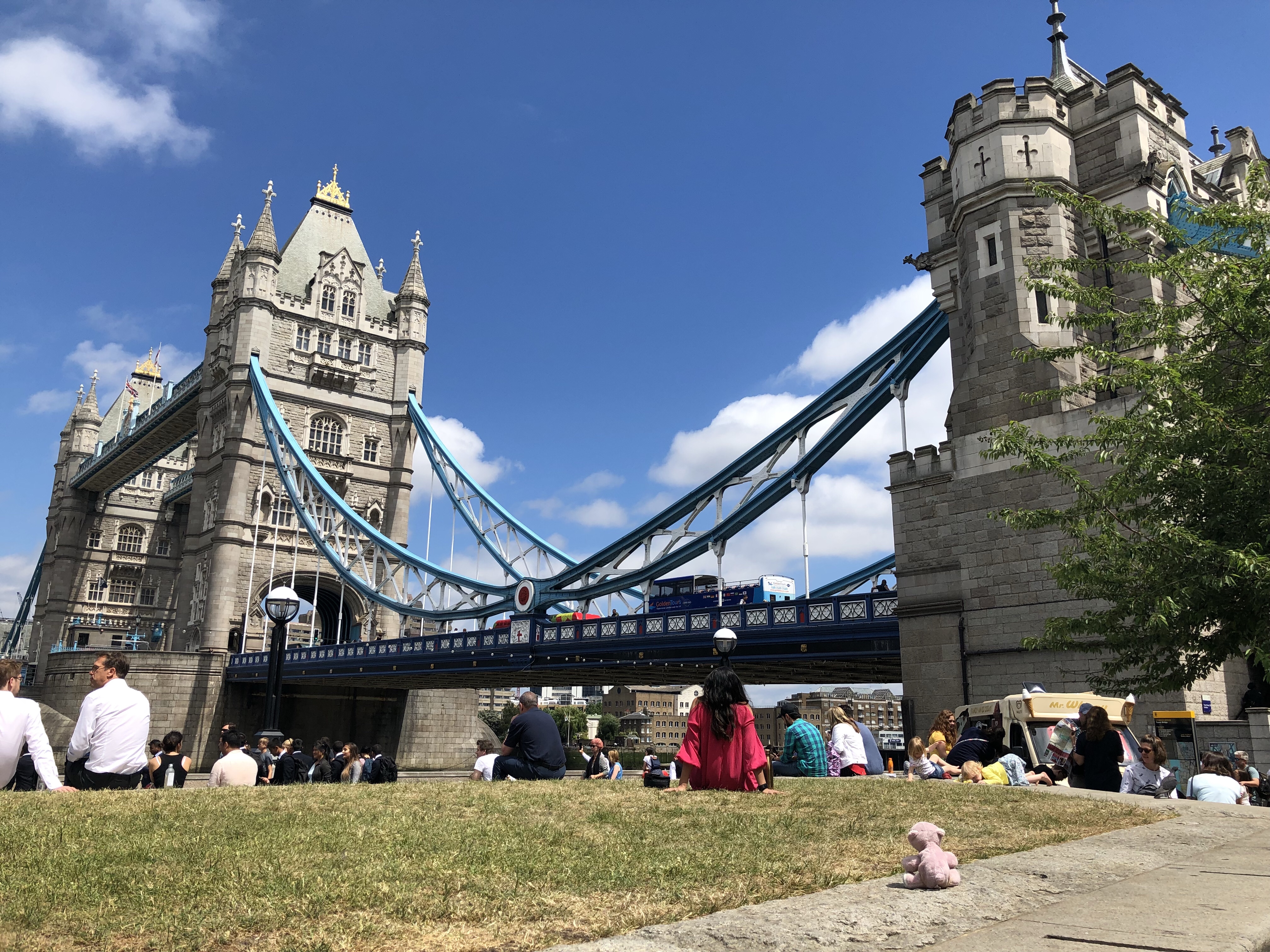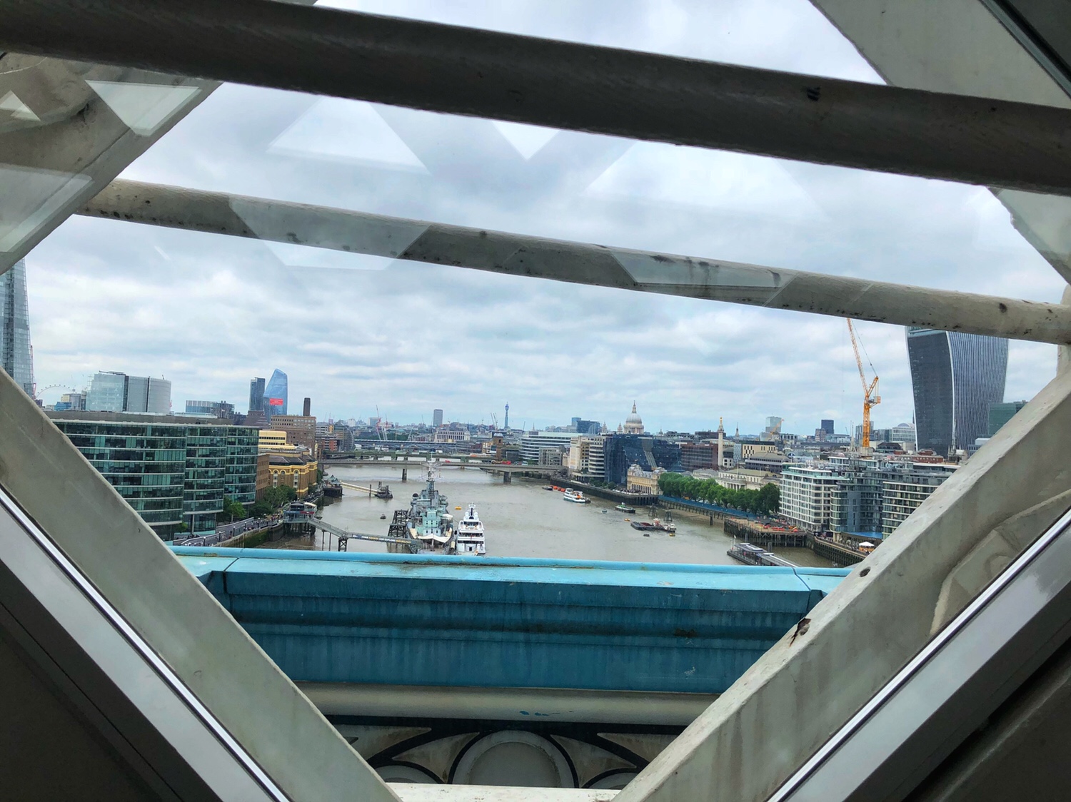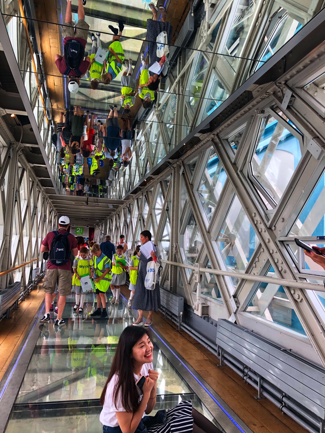 位于伦敦塔附近,开建于1886年,是一横跨泰晤士河的高塔式铁桥。这座著名的经历了百年沧桑的开悬索桥,见证了历经二战,经济大萧条和如今的世界大都市的伦敦。站在桥上可以欣赏泰晤士和两岸的风景。伦敦桥的第二层上面的展览讲述了建桥历史,我们在的时候一群不知道那个学校的小学生也在那里参观,可惜的是她(他)们还有答题卷子需要填写。桥上有一段玻璃地面,距离泰晤士河有大约42米,透过玻璃可以看到底下大桥上来来往往的车辆和行人,河上游来游去的船只。