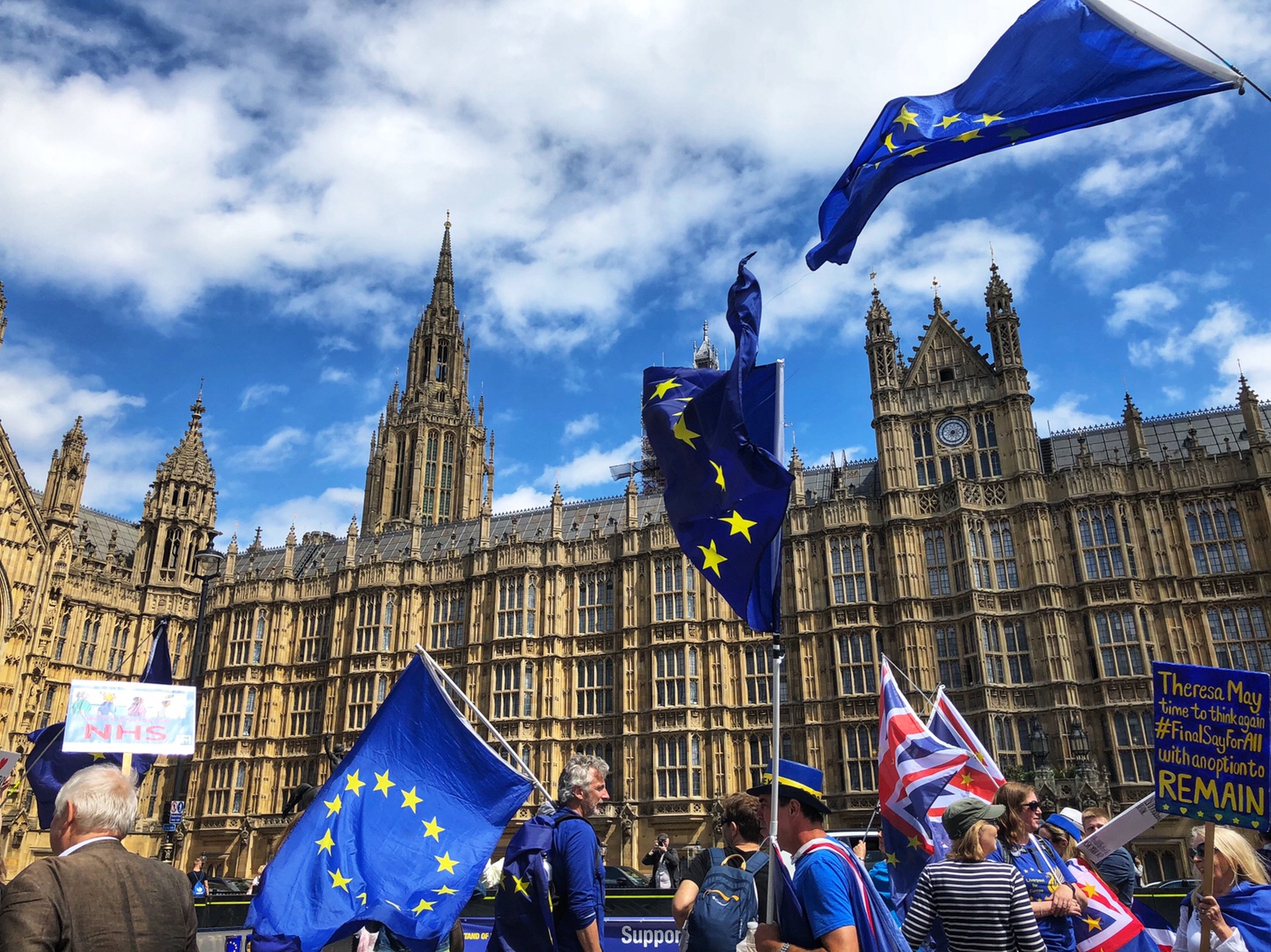 在去英国国会大厦旁边的西敏寺的路上,看到在国会大厦门前抗议英国脱欧的人群,她(他)们非常激昂,还不断的高歌 “让脱欧滚蛋吧” (我还真不知道怎么翻译她们的词,所以翻译的不太好。)