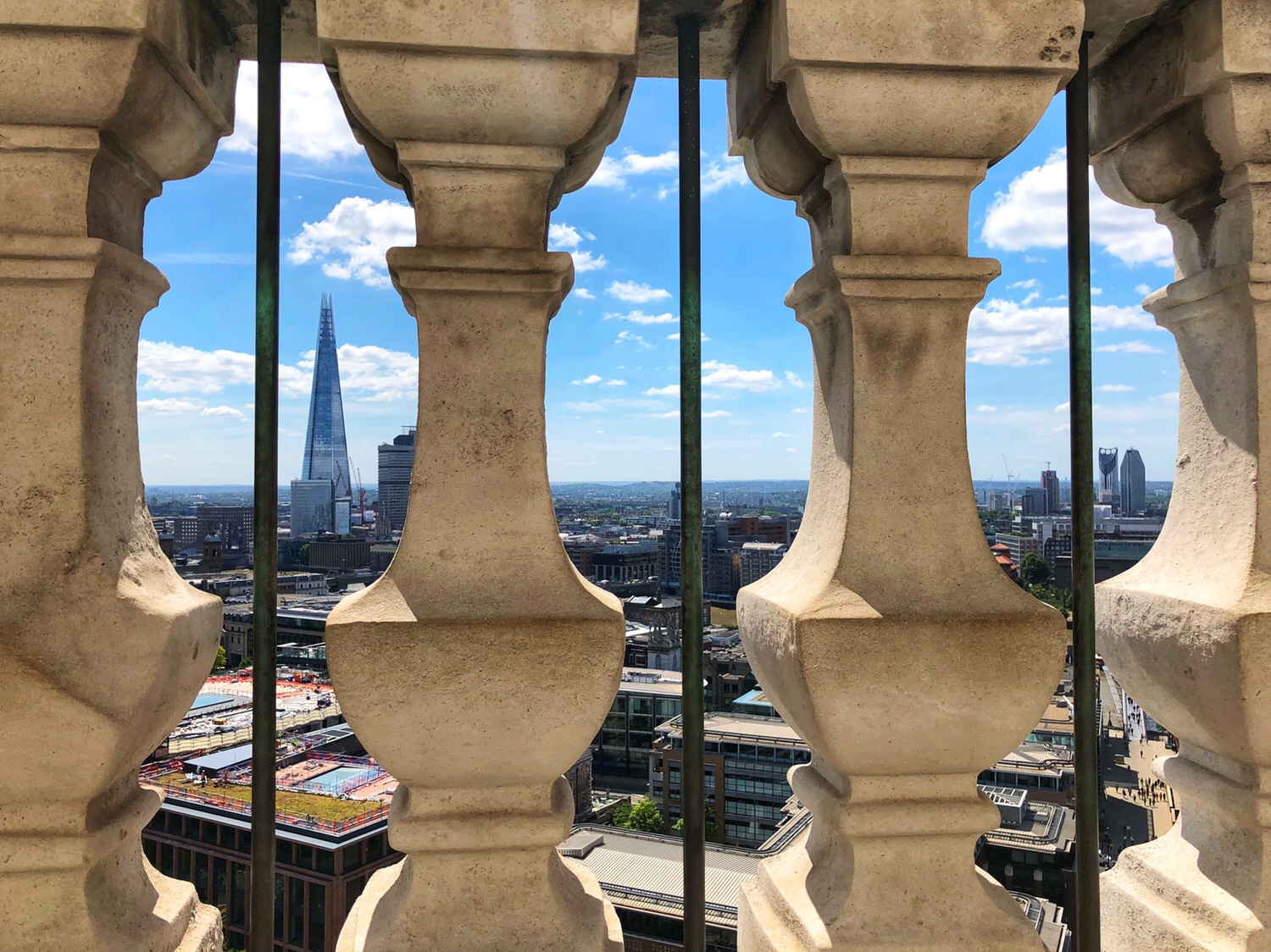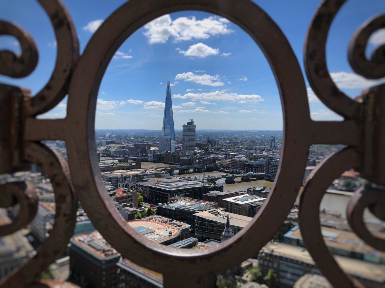 非常感激教堂允许游客到教堂顶端的金回廊,这样不仅可以感受教堂的宏大,圆顶后面的结构,还可以在上面眺望伦敦全景。一共有528步台阶到达上面,经过耳语廊,石回廊到达最上面的金回廊。从耳语廊到金廊的台阶很难走,是那种非常狭窄盘旋而上的梯子。上去之后真是豁然开朗, 景色太美了。