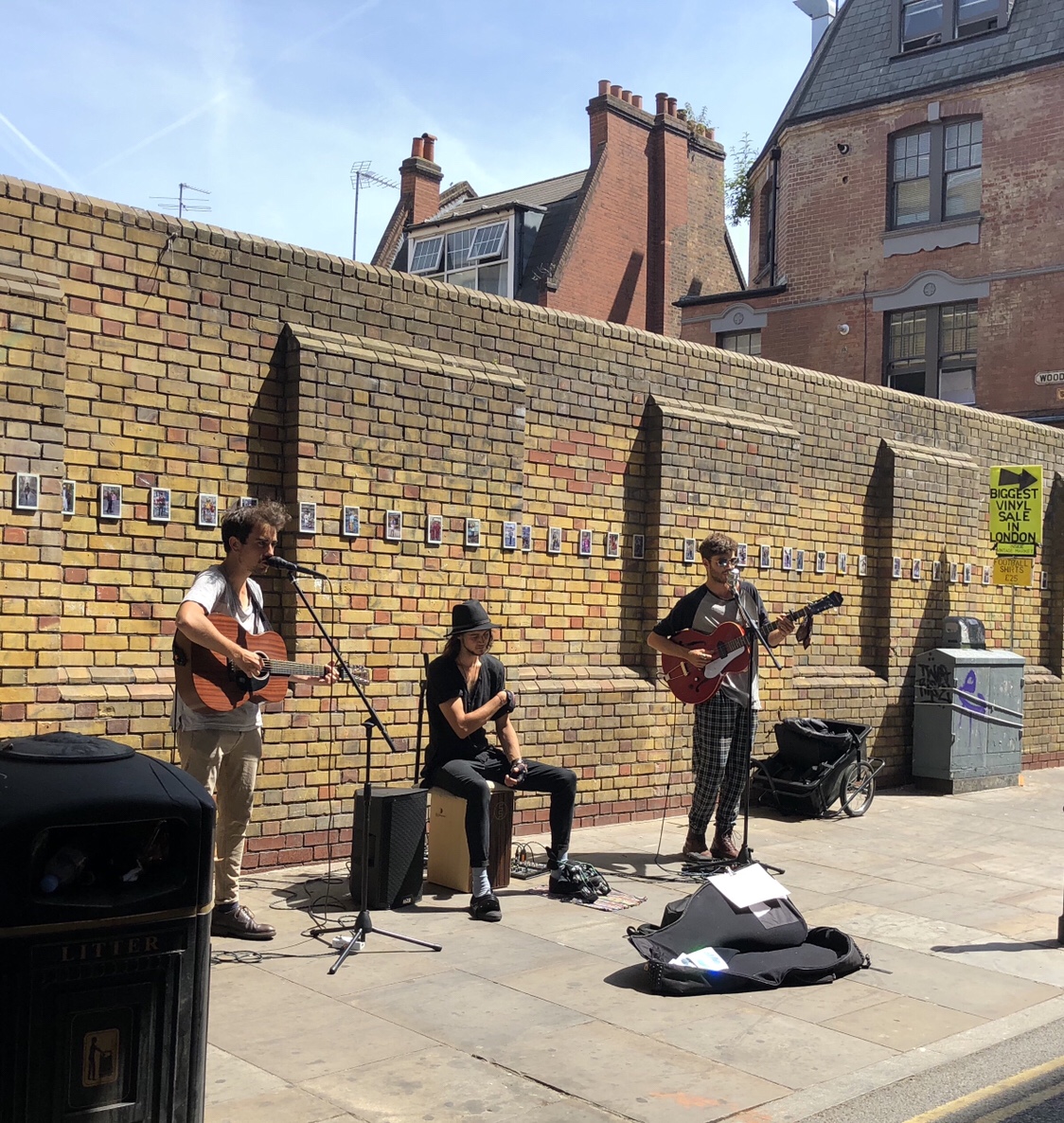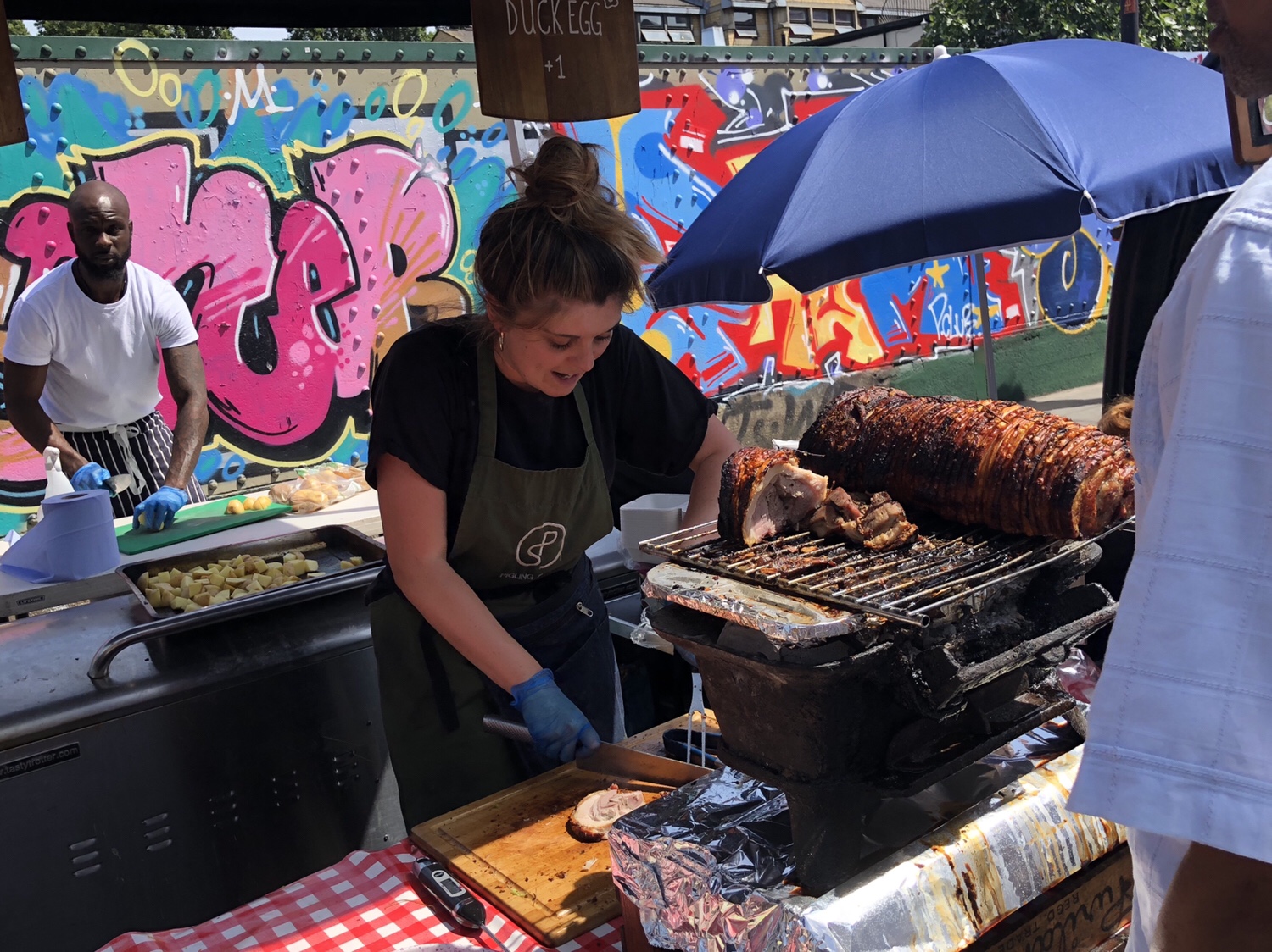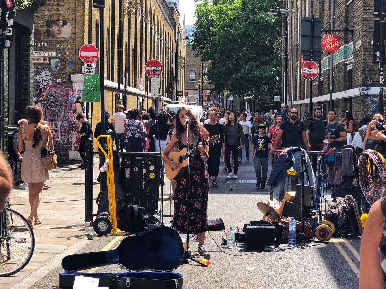 很巧合的是今天是周日,这里有比平时都大的市场,比前几天去的博罗和卡姆登区市场要大很多,这个市场很接地气,各种街头小吃 ,很多亚洲菜小摊,尤其是中国菜,都是已经做好的菜,炒面什么的,放到一个一个的大盆子里卖; 各种商品玲琅满目,小饰品,衣服,包,工艺品等等,感觉价格应该也是比较平民的;这里还有风格各异很引人注目的街头涂鸦和街头表演。