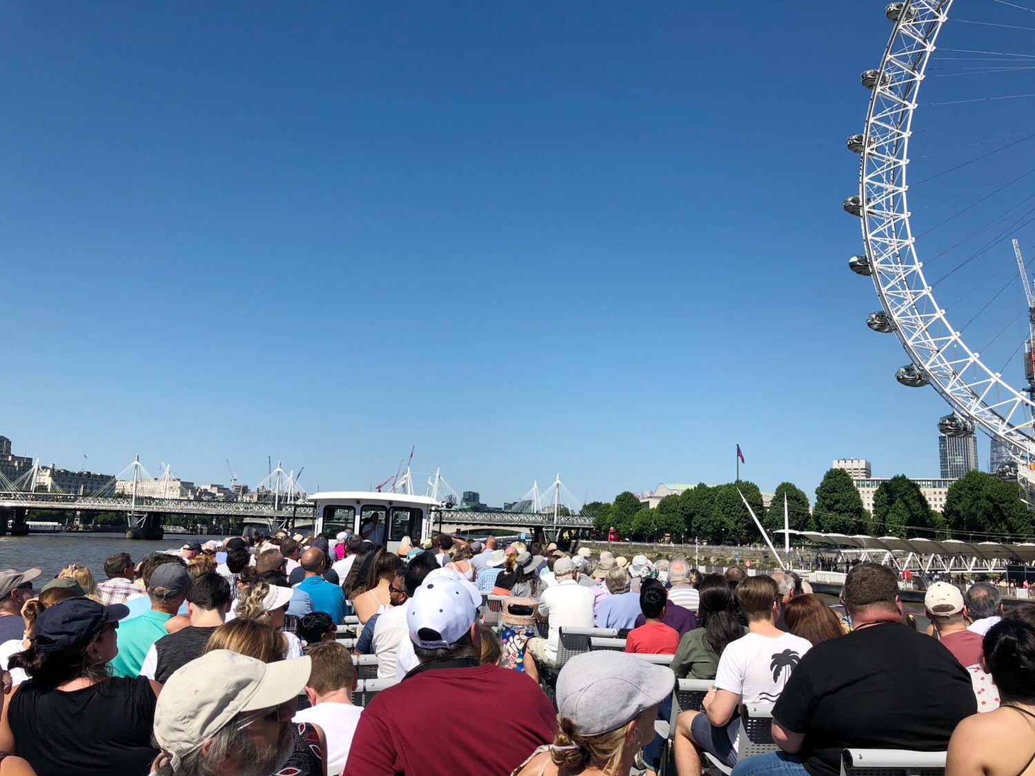 Feel no mood to continue writing yesterday’s blog, haha, I’ll conclude it briefly. From the Hampton Court back to the city of London, a sightseeing boat using our sightseeing card allowed us the pleasure of the scenery on both sides of the Thames.