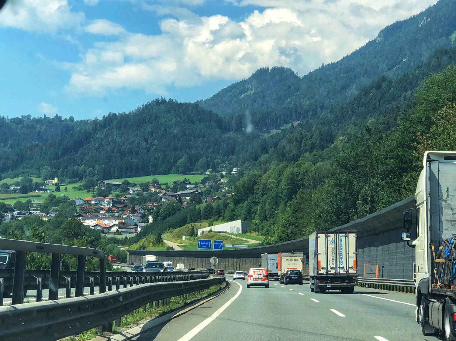 在萨尔茨堡停留的几天中,PJG计划去因斯布鲁克一趟,同样去追寻他父亲69年前的足迹。昨天看了天气预报,说那里今天没雨,后天有雨,所以我俩计划今天就开车过去。车程大概有1小时50多分钟,中途的一段要穿过德国,刚出了萨尔茨堡没多久,高速上就开始堵车,我俩还在疑惑是什么原因,结果没想到是属于进入德国的边检,这还是第一次在欧盟国内开车遇到有边检的,可是其实根本不严格,基本都属于不检查状态,我俩前面的车辆根本没停,直接减速后通过。我俩的车的后窗是有贴黑色的玻璃膜,所以工作人员看不清楚,就让PJG摇下后车窗,然后问我俩去哪里,从哪里来,然后就祝我俩旅途愉快。过这个边检的堵车状况,耽搁了有20多分钟。