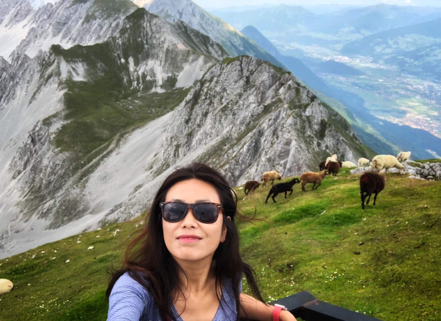 一路开到因斯布鲁克的景色还真美,连绵不绝的高山,绿地,和点缀在山间的教堂及周围的小镇,让我俩的旅途很是愉快。