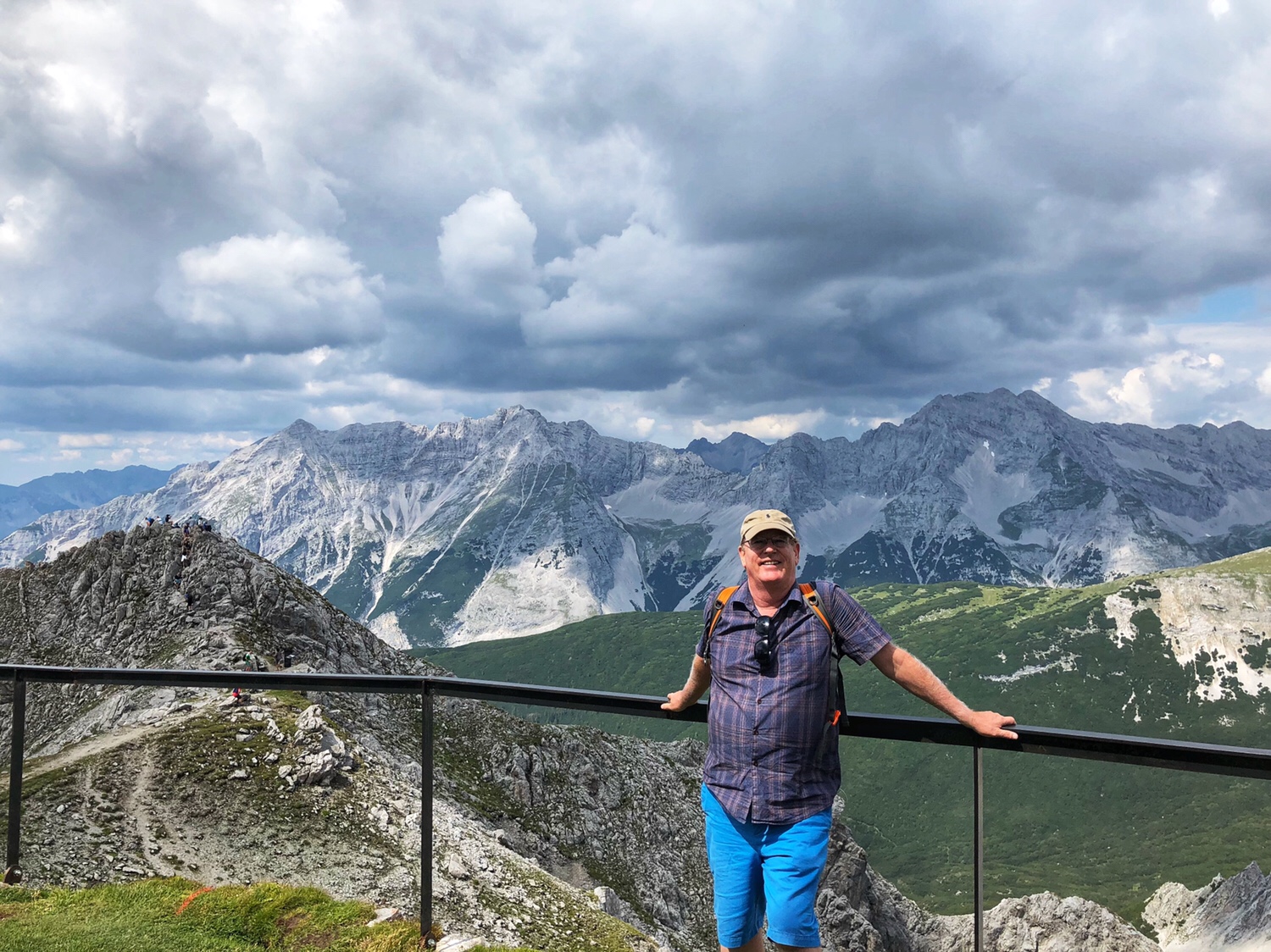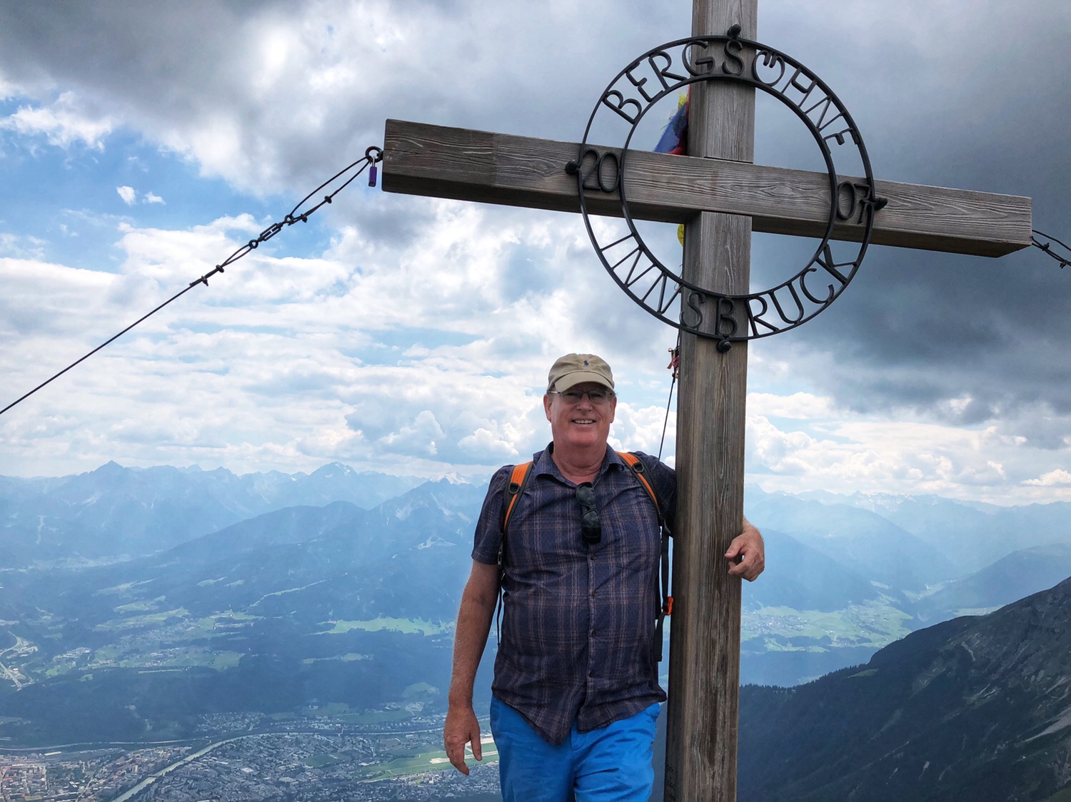 The black and white photo below was taken by PJG’s father in Innsbruck. According to his notes on the back of the photo and from other photos, PJG basically determined that the photo was taken on the Hafelekar Peak. So we followed his path up the mountain with the cable cars just like his father did.