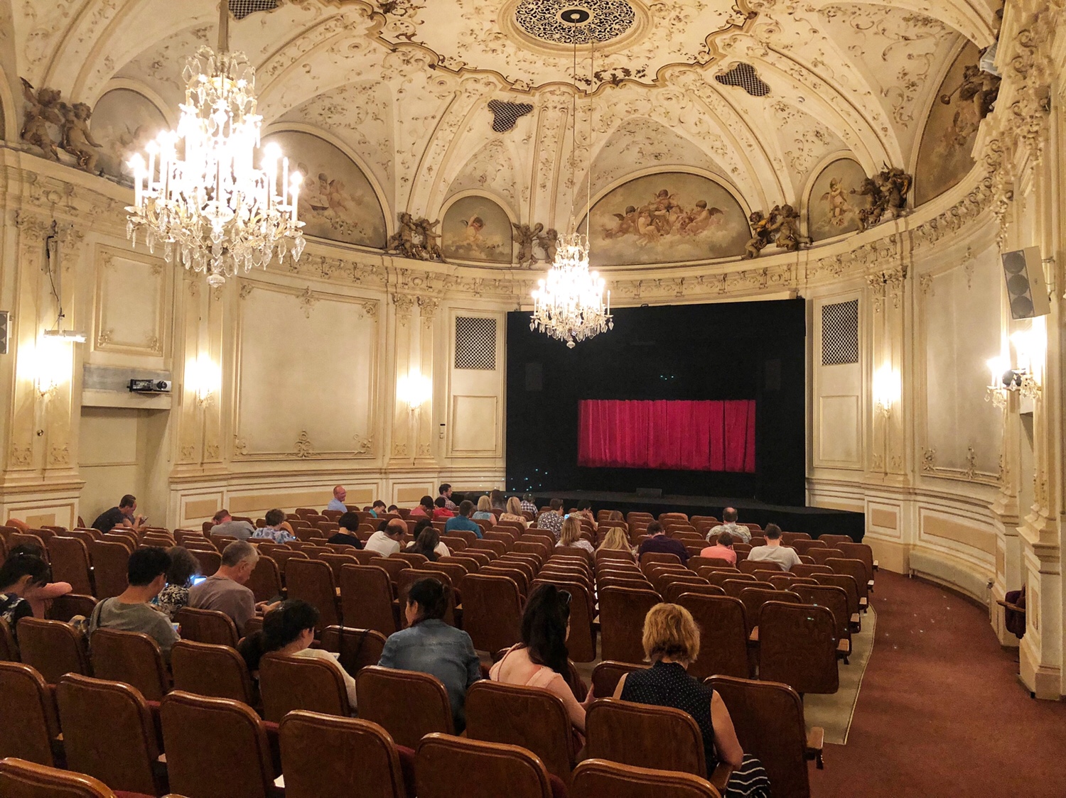 看剧的人也不是很多 . The theater filled up a bit more before the show started.