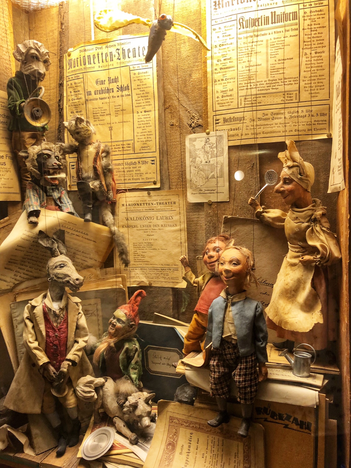 Photographs are not allowed in the museum, so no photos can be shared here. After visiting the Mozart-born museum, we went to a place where the AirBnb owner had recommended a certain dessert. (You’ll have to wait for another blog about the dessert.) After eating the dessert, we went to the Salzburg Marionette Theatre to watch a performance of ,”The Sound of Music.” PJG’s father also went to the same puppet theater to watch a marionette show, but he was pretty sure it wasn’t of “The Sound of Music.” Founded in 1913, the Salzburg Marionette Theatre is one of the oldest theaters in the world with a marionette performances. The theater is not big, and in the lobby they show a lot of the original puppets that have performed there before.
