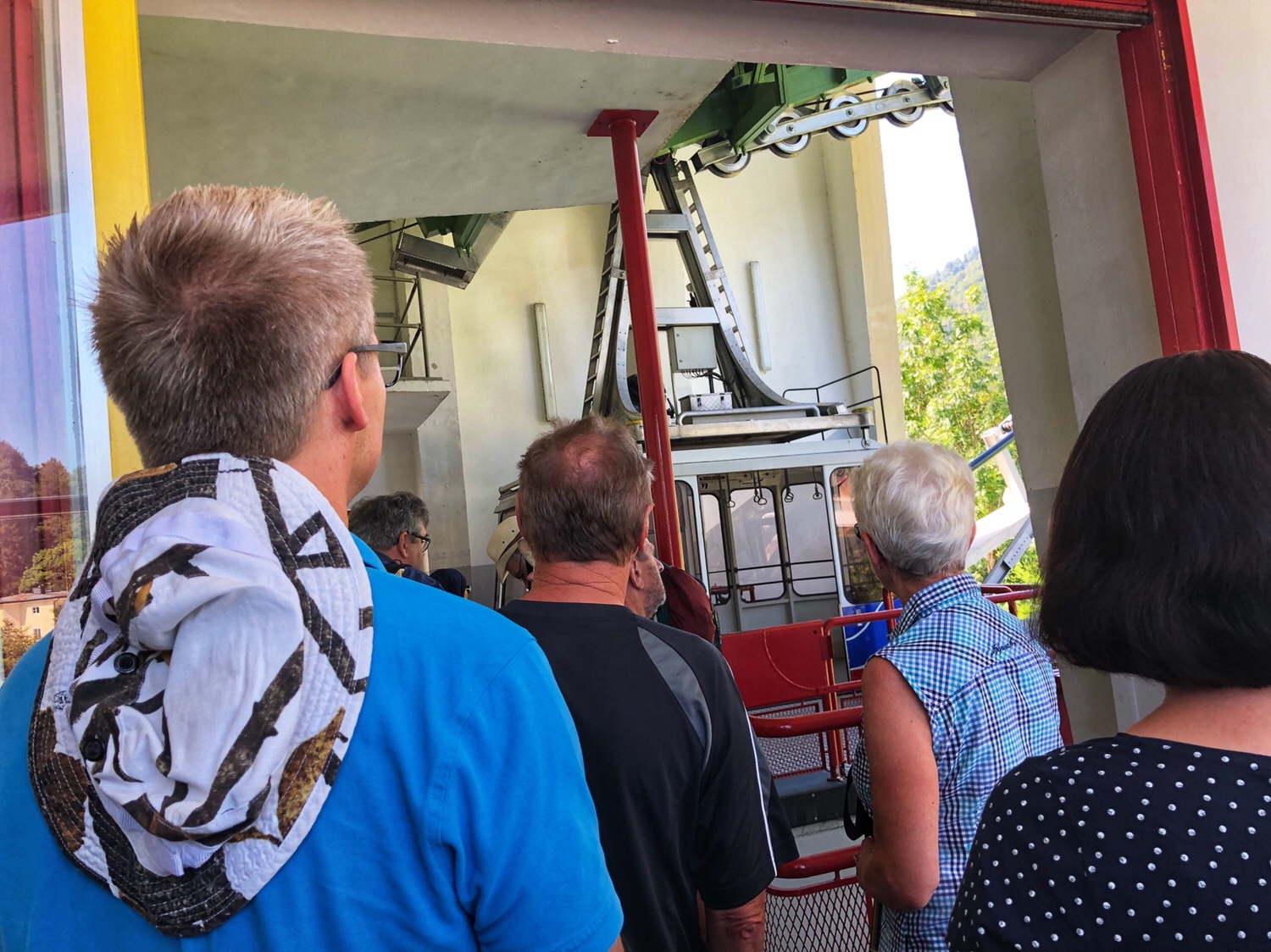 坐上缆车5,6分钟就到了山顶,温特山没有前天我俩去的因斯布鲁克的山高,只有海拔1973米,山顶的景色也非常不同,这里的山顶还有大面积的绿色植被,而且俯瞰萨尔茨堡城的北面没有被群山环绕,是一片山谷。下了缆车,还要再爬山到达山顶,我的穿着实在不像是爬山的,估计很多人看到我都在笑话这我典型的游客形象,事实上PJG就一直在笑话我,包括跟我打扮接近的一些亚洲人 😂😂😂