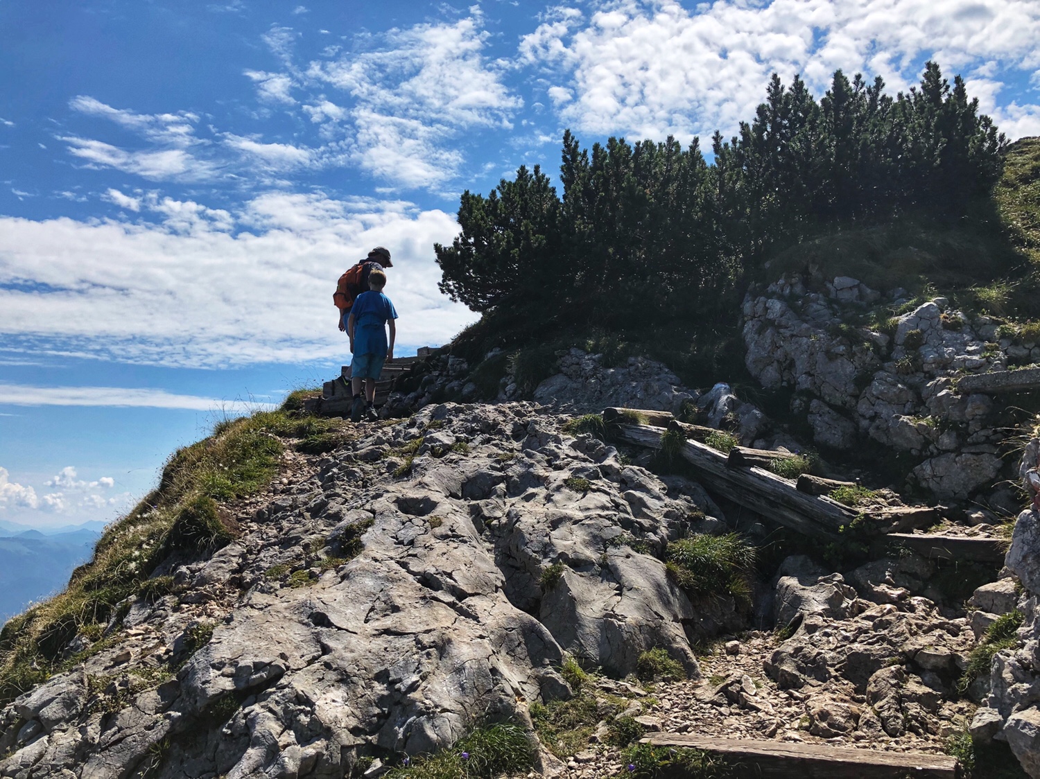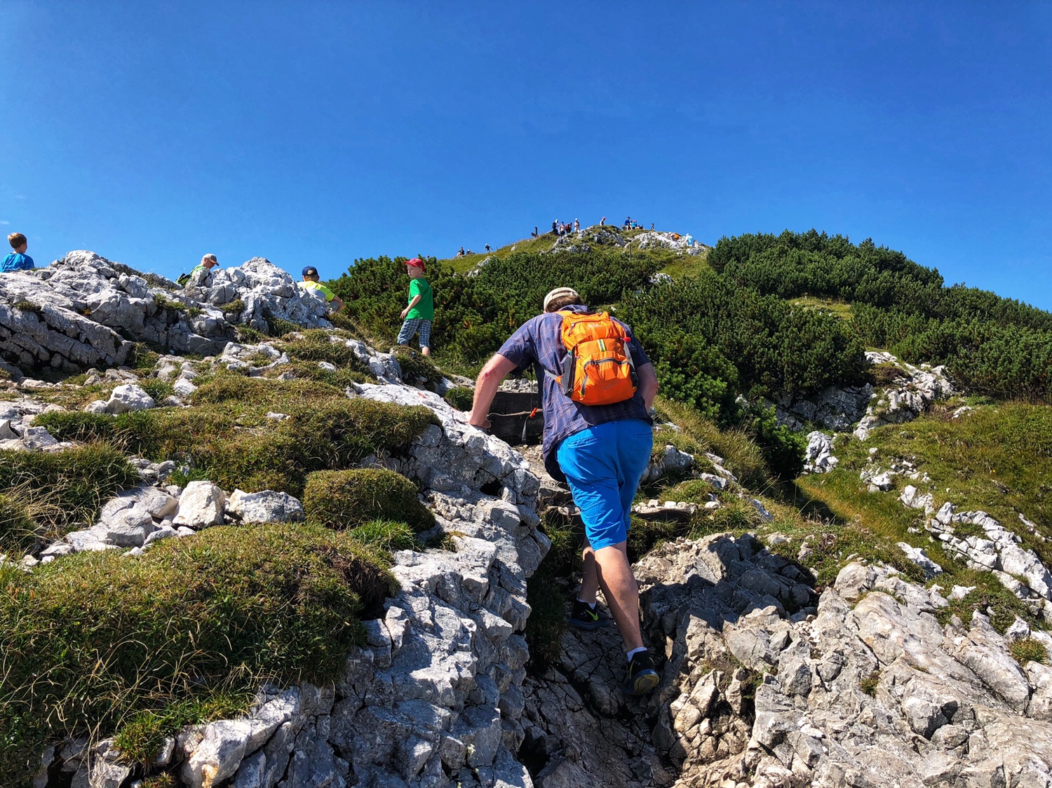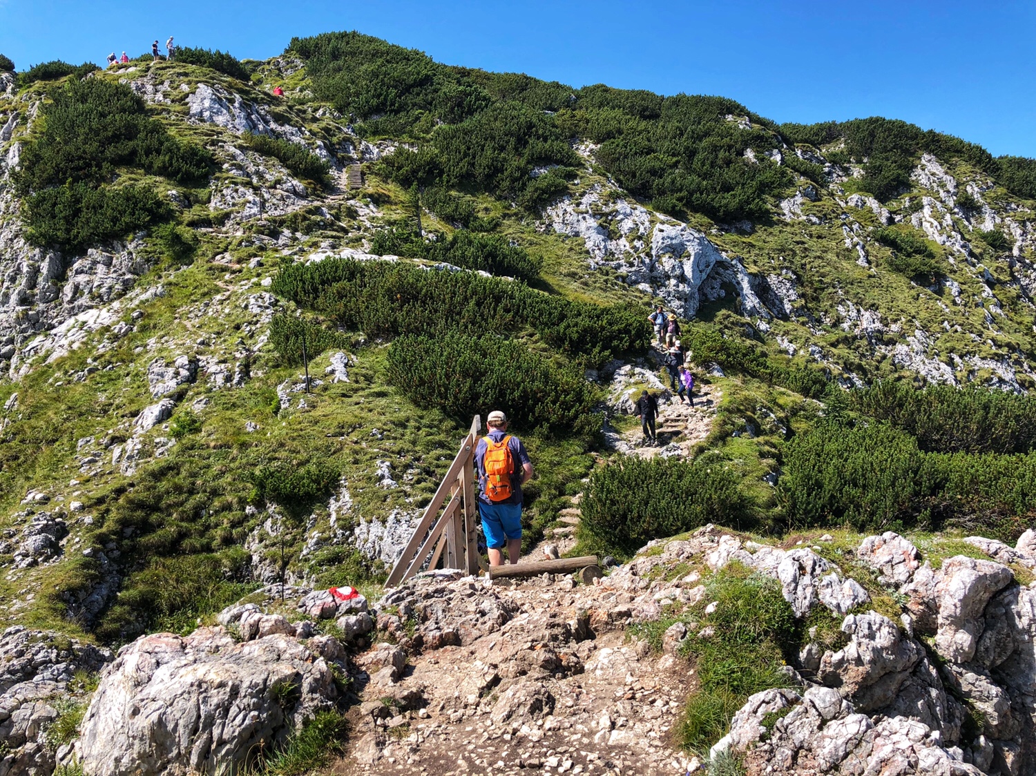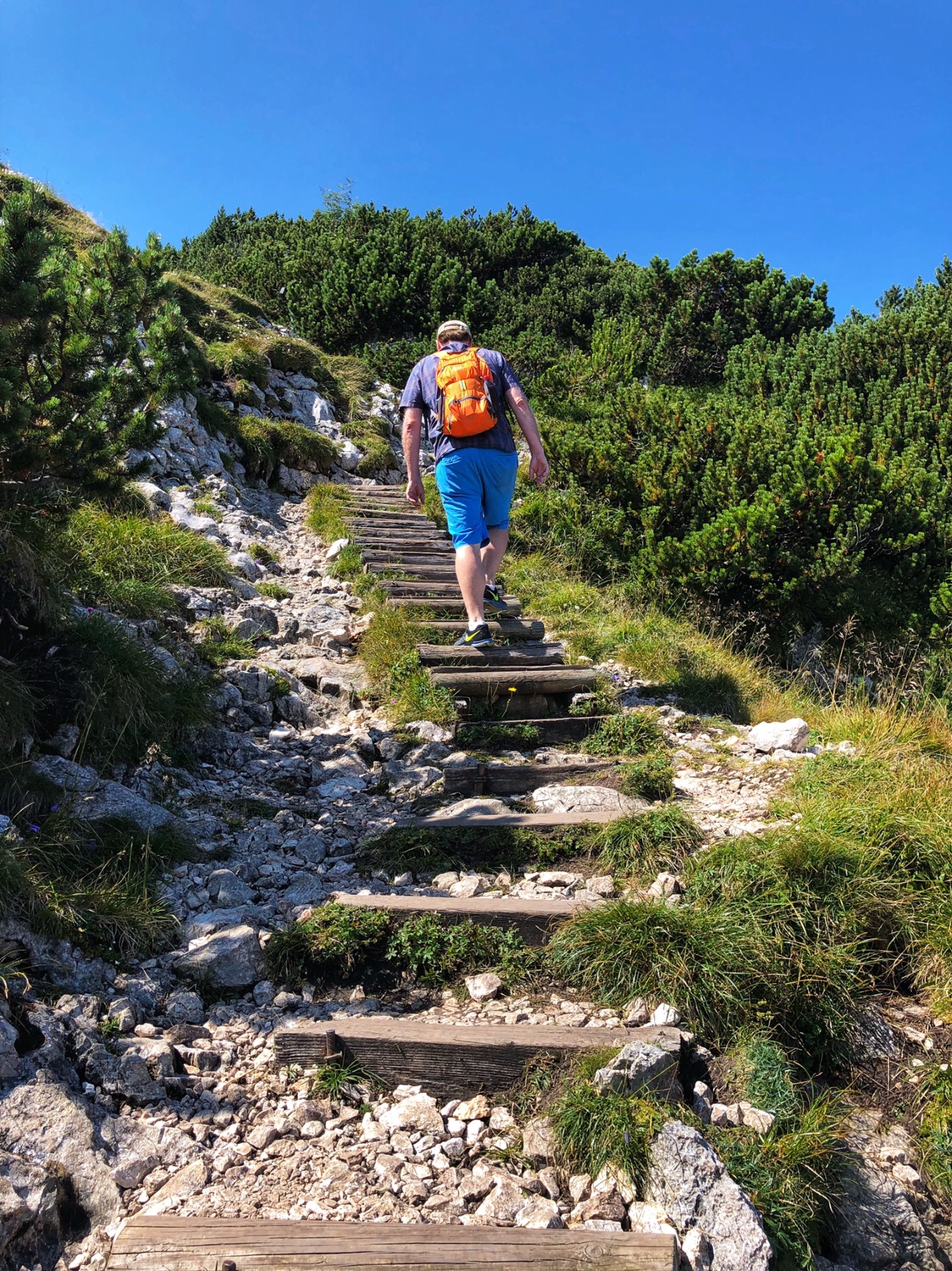 It took only 5 or 6 minutes for the cable car to get to the top of the mountain. The Mountain is not as high as the mountains in Innsbruck that we were at the other day – this mountain is only 6470 feet above sea level. The scenery on the top of the mountain is very different. There is a large area of green vegetation on the top of the mountain. Surrounded by mountains, overlooking the northern part of the Salzburg valley. After getting off the cable car, we had to climb the final part of the mountain to reach the top. I didn’t really dress for climbing a mountain. I am sure many people were laughing at me as a typical tourist. In fact, PJG has been laughing at me, and he asked, why do all asians dress up to go hiking up a mountain? 😂😂😂