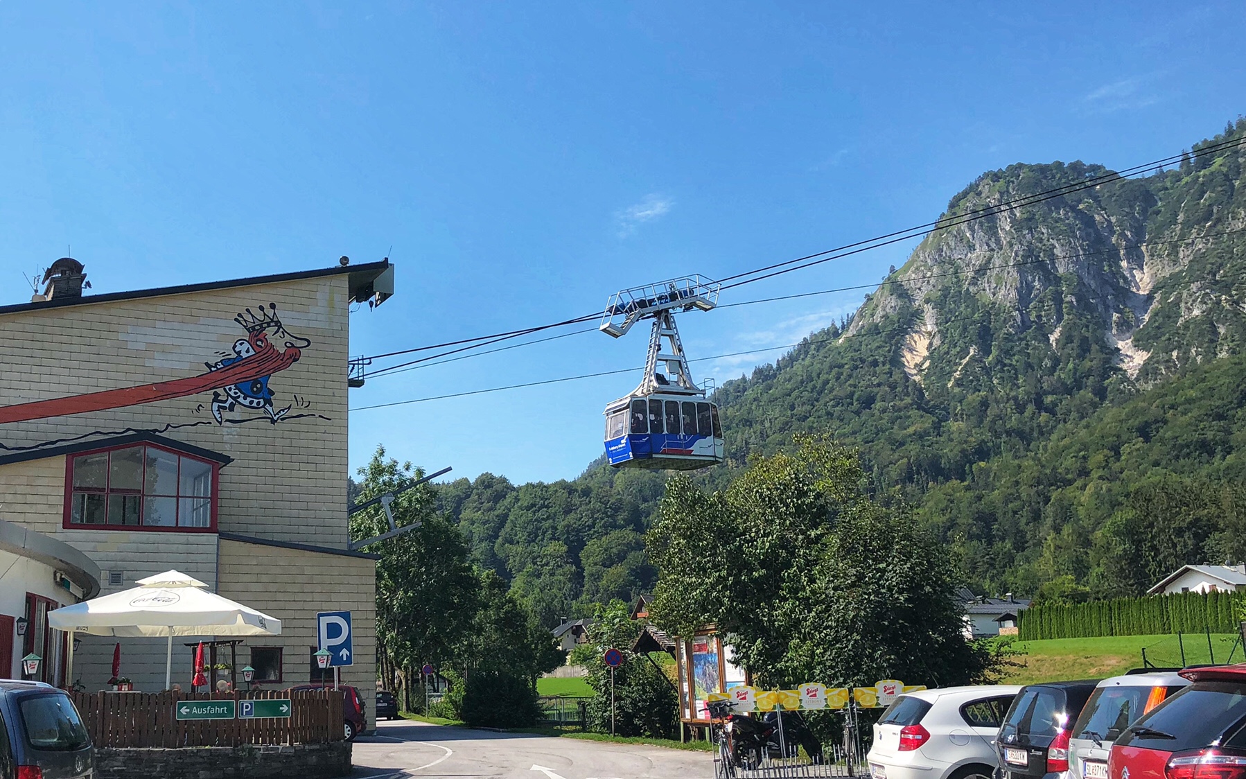 In the morning, we prepared for our first excursion going up to the top of the Mountain in Salzburg. Our Salzburg Card contains tickets for the cable car. After checking the map we found that it takes more than an hour to get to the cable car by public transportation. On the other hand, it was only 20 minutes to drive – so we decided to drive, and even better, the parking was free.