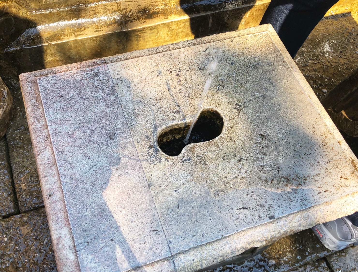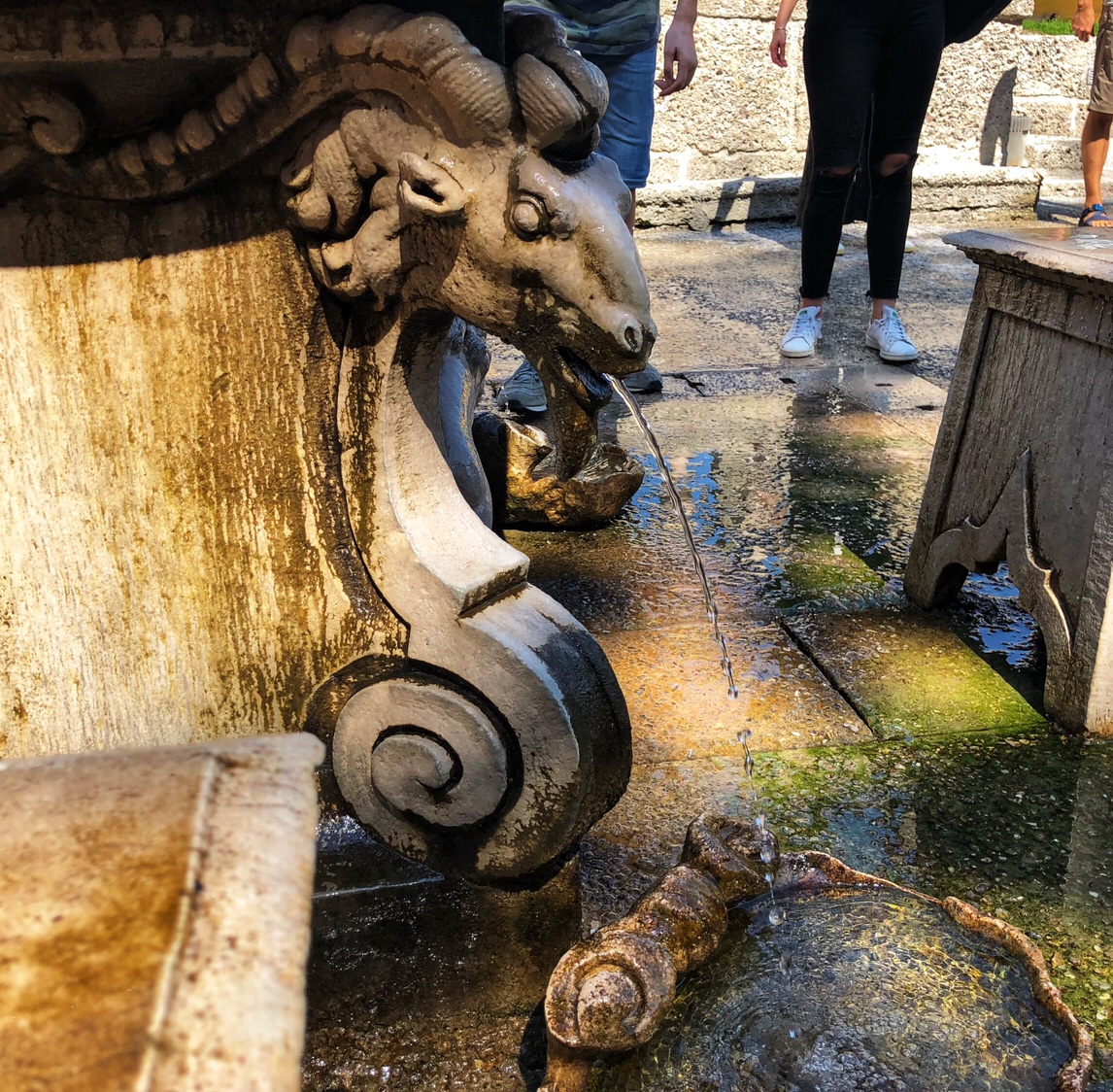Speaking of the fountain, when we went to visit, we really didn’t know that there would be a tour guide who would take us to visit the fountains that were designed and built more than 400 years ago. The tour guide first took us to the Royal Table where the archbishop would entertain guests. Everyone sat down on the surrounding area and some people chose to sit on the several stone benches around the square table. The tour guide spoke in two or three languages and told us some history of the fountain, and then told those sitting around the square table to follow the rules of the former Archbishop. The Archbishop told the guest that they can not stand up until he does. The tour guide then used his special key to open the fountain. Suddenly, the fountain began spouting water from all directions around the square table. From a hole in the center of the stone bench where the guests were sitting was also spewing spring water. Of course, it was only after the guests sitting around the square table had stood up that we could see they were all wet, haha 😄