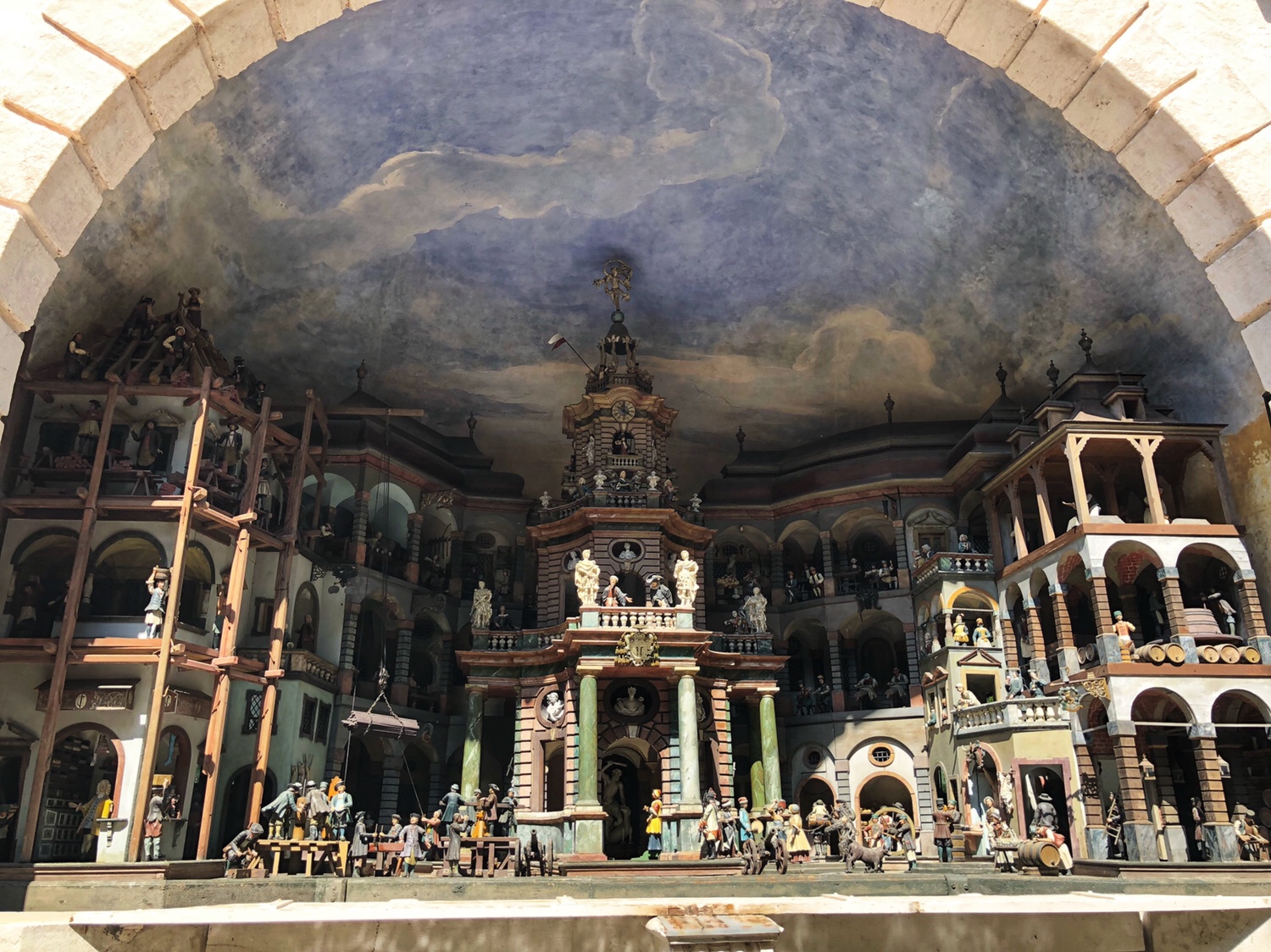 PJG的父亲当年也拍了一张照片,PJG本以为是在木偶剧院拍的,直到昨天他才发现照片里的木偶们其实是在这个机关喷泉里。今天,进到了实物,看起来比照片上壮观多了。