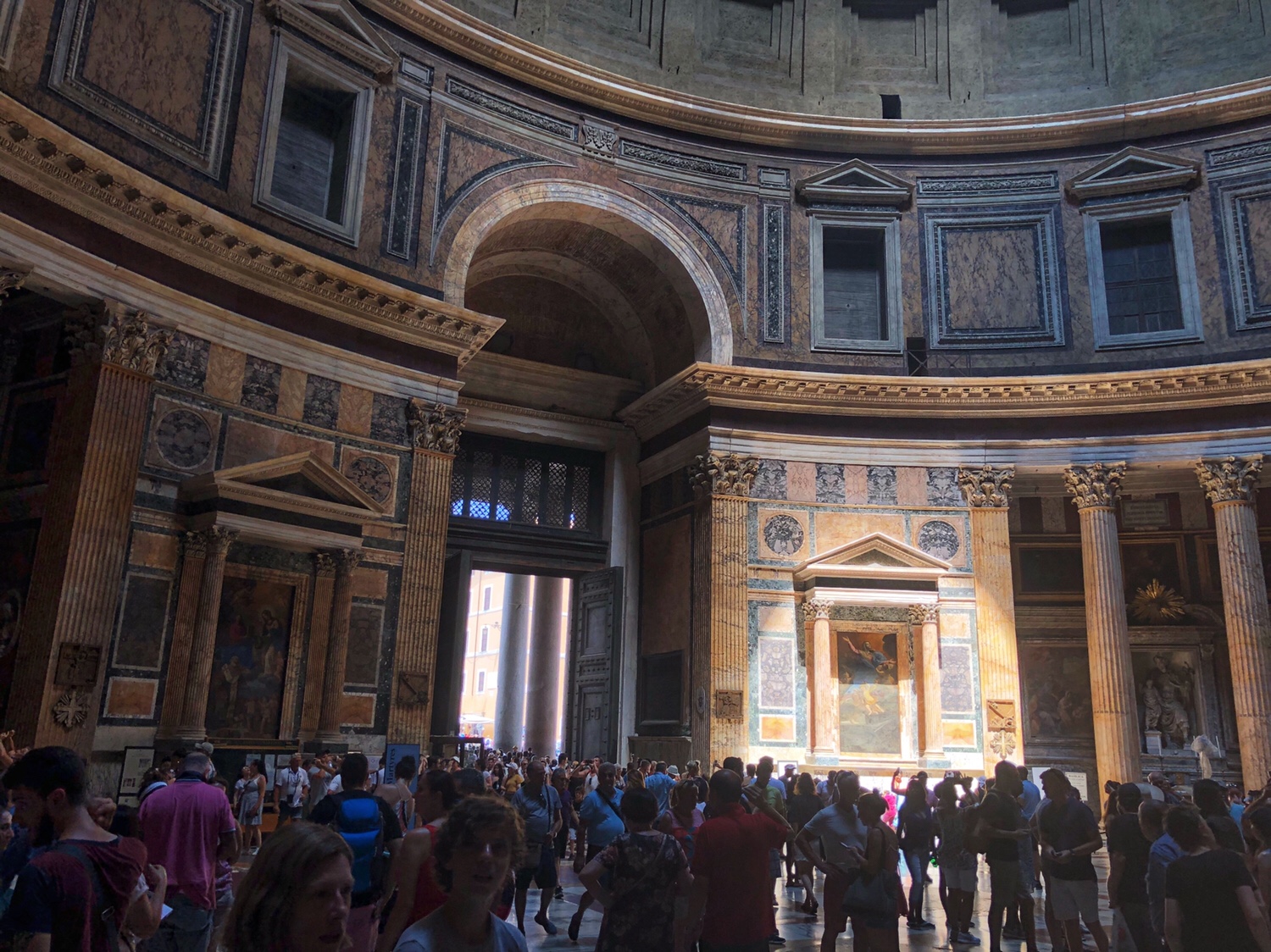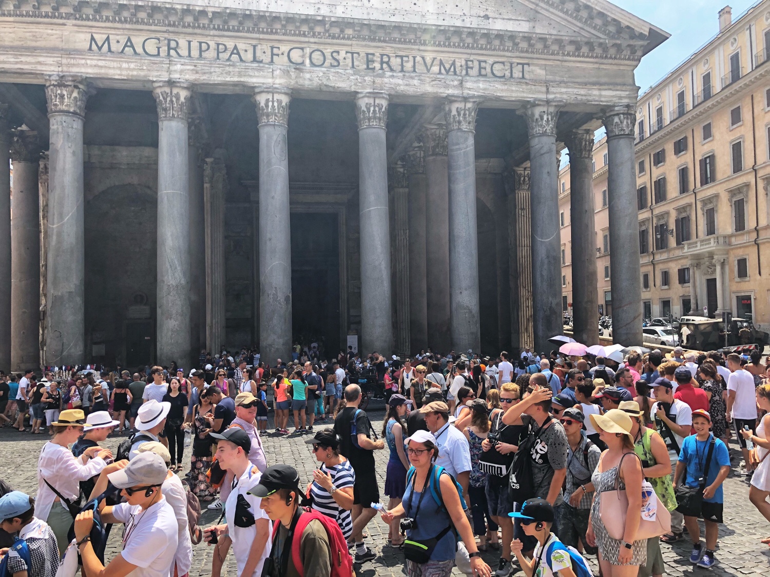 被炙热击败的我俩,参观完万神庙就步行会民宿了。  The two of us who were thoroughly defeated by the heat, left the Pantheon and walked back to our cool apartment.