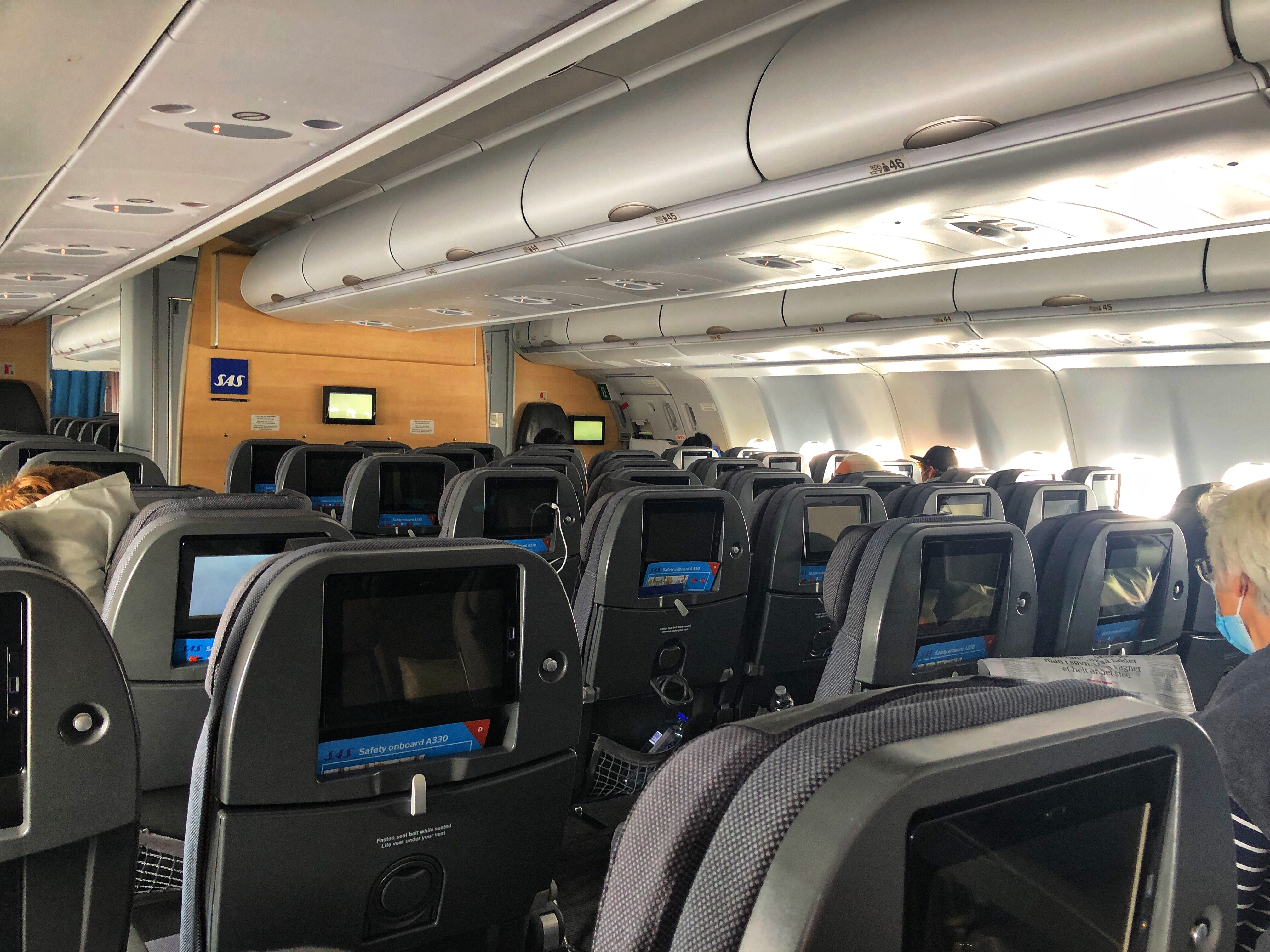 The check-in was very easy at the San Francisco airport. They just checked our Passports and CDC vaccine cards, and it seemed as smooth as before the pandemic. It took 9 hours and 45 minutes to fly from San Francisco to Copenhagen. This likely was the most relaxing and comfortable flight I have ever taken. The plane can hold 290 people but on our flight it had only 48 passengers! Both of us chose a row of 4 seats and we spent much of the 9+ hours laying down.