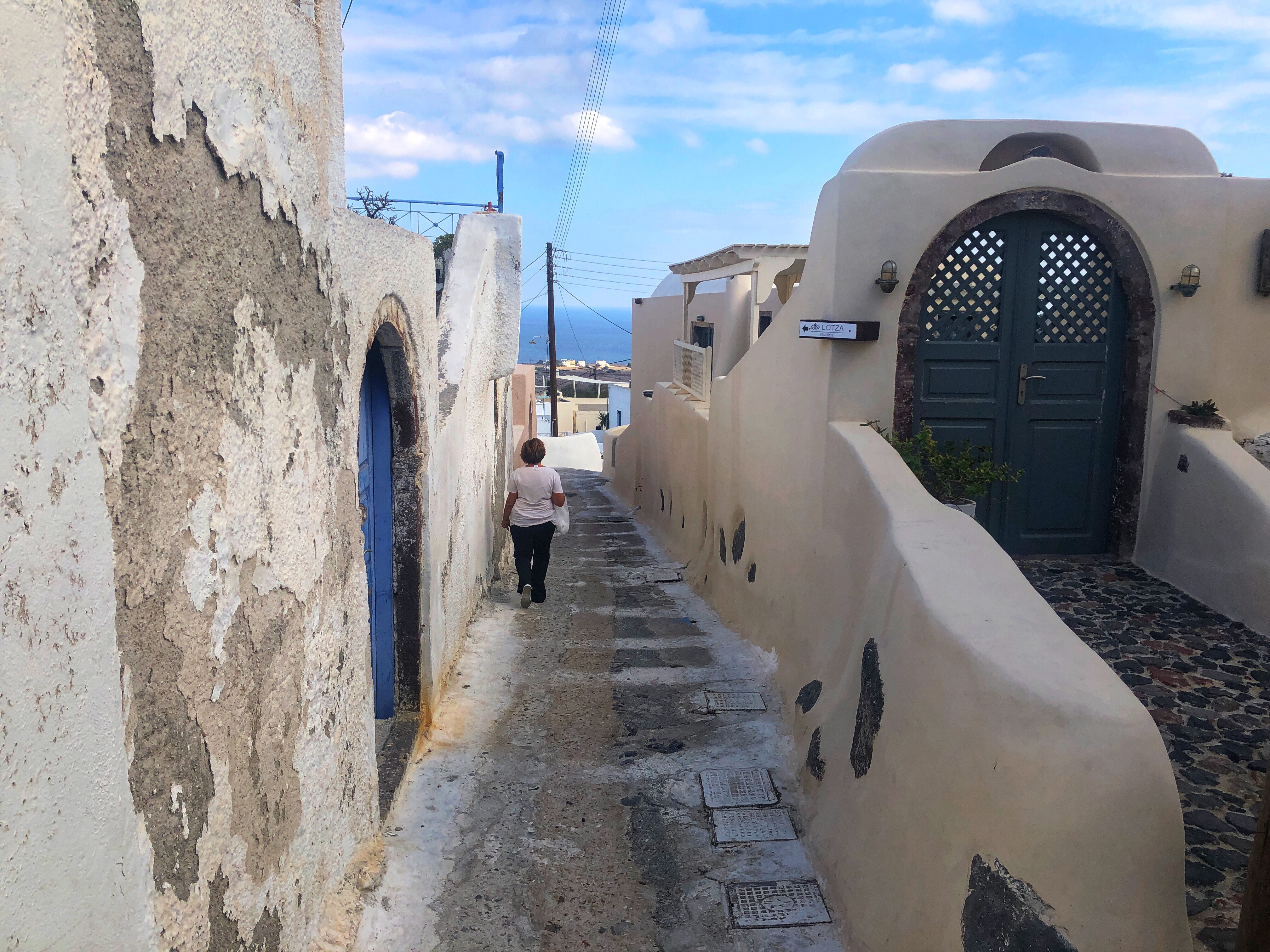 Of course, we did still want to get some exercise, so we hiked to two different parts of Oia, on the back side of the island, where the locals live. There are no tourists, and there are actually not too many locals either, we only saw a few people! Yesterday when we explored the backside there was nothing really worth noting, just a barren area dotted with some local houses.