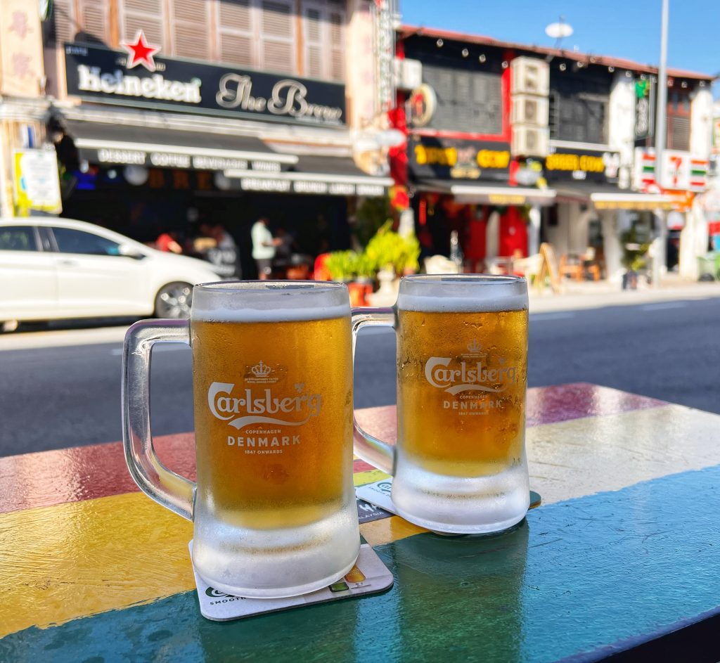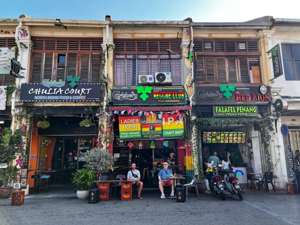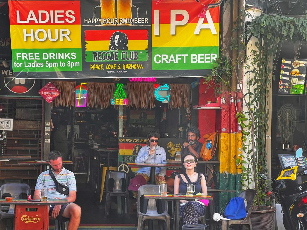 On that Friday evening, we took a Grab to the old town area of Georgetown, aiming for the legendary Love Lane. Along the lane, a series of ancient shophouses and colonial-era buildings lined up, quietly telling the stories of time with their deep historical significance to Penang. We initially planned to sit in one of the bars, enjoying the slowly flowing crowd, but at 5 o’clock, Love Lane was still in its quiet moment of the day, with most shops in the alley yet to see any visitors. Thus, we turned to the bar area outside the alley, where we found a perfect corner, fulfilling our small wish at the Original Reggae Club.