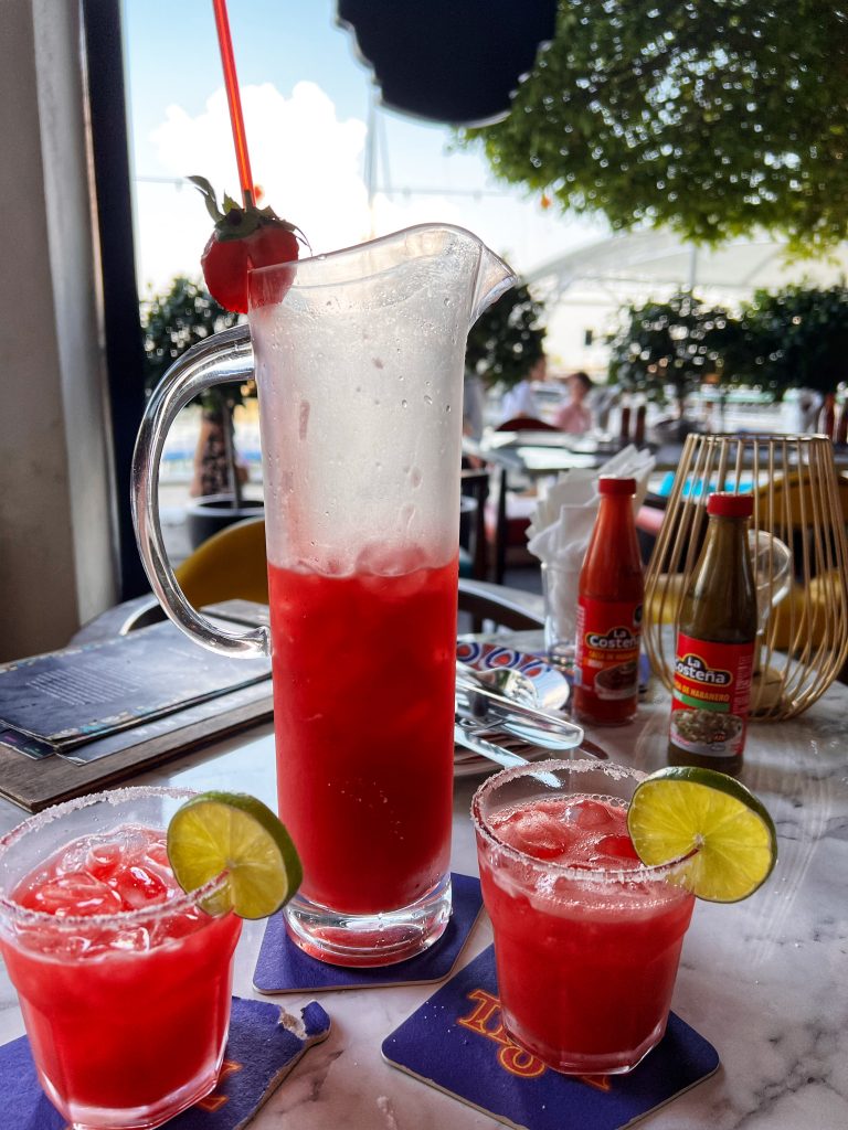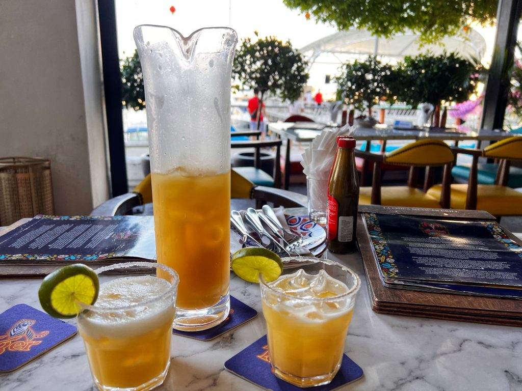 我俩坐在一个墨西哥饭店,来了两扎饮料,听着那些很熟悉的中国歌曲 – We sat in a Mexican restaurant (La Chica Mexican Grill), ordered two jugs of drinks, and listened to those very familiar Chinese songs.