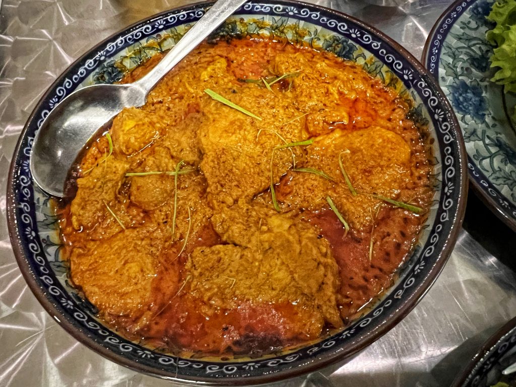 这是一道咖喱鱼汤,也是一道传统的娘惹菜,和另外两道菜比起来,这道稍显逊色。- This is a Curry Fish Soup, also a traditional Nyonya dish. Compared to the other two dishes, this one was somewhat less impressive.