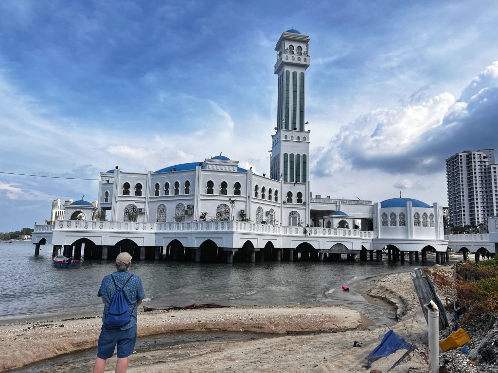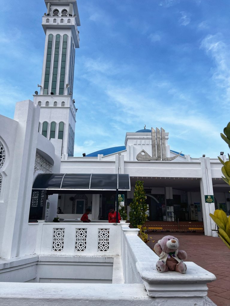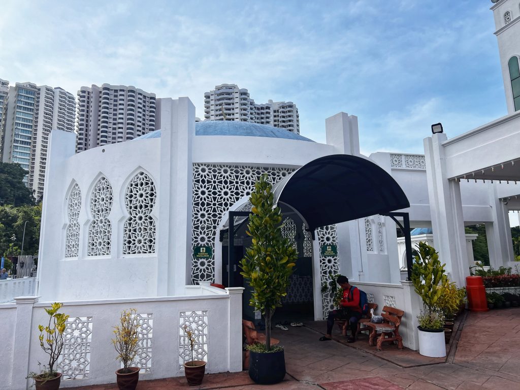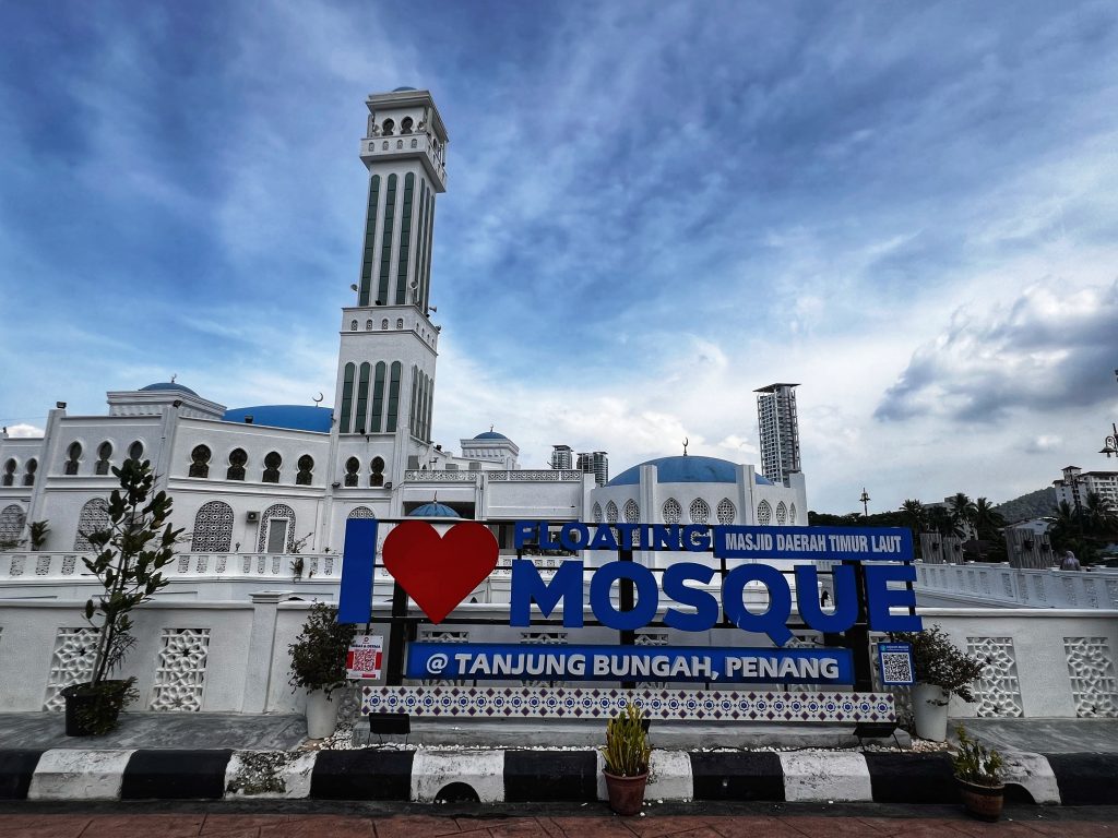 After immersing ourselves in the simplicity of Chew Jetty, we returned to our comfortable and cool home for a brief rest. We then took a Grab to another distinctive attraction in Penang — the Penang Floating Mosque. Named for its construction on stilts over the water, this mosque is one of the most unique religious buildings in Malaysia and even Southeast Asia, appearing to float on the sea at high tide.
