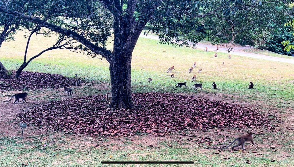On Sunday, we walked for 40 minutes to a market in the morning, where we bought some vegetables, fruits, pork, and four chicken legs, planning to cook dinner at home on Sunday night. Today’s temperature was 90 degrees Fahrenheit, with 85% humidity, making it feel like 101 degrees Fahrenheit! In the afternoon, we took a Grab to the Penang Botanical Gardens. To our surpise, we saw a lot of macaques! It was truly a trip worth making.