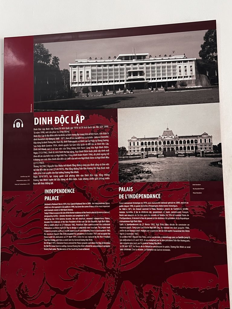今天早晨在酒店享用了包含在住宿费中的自助早餐后,我们便前往了位于酒店旁边的独立宫参观。门票价格为每人65,000越南盾,另外音频讲解需支付90,000越南盾。看到了很多外国游客和越南本地人。这座宫殿最初在法国殖民时期被称为诺罗敦宫,建于1868年至1871年间,曾是法属印度支那总督的官邸。其建筑展示了典型的法国殖民风格,融合了欧洲文艺复兴时期的设计元素,显著体现了当时法国对该地区政治和文化的深远影响。