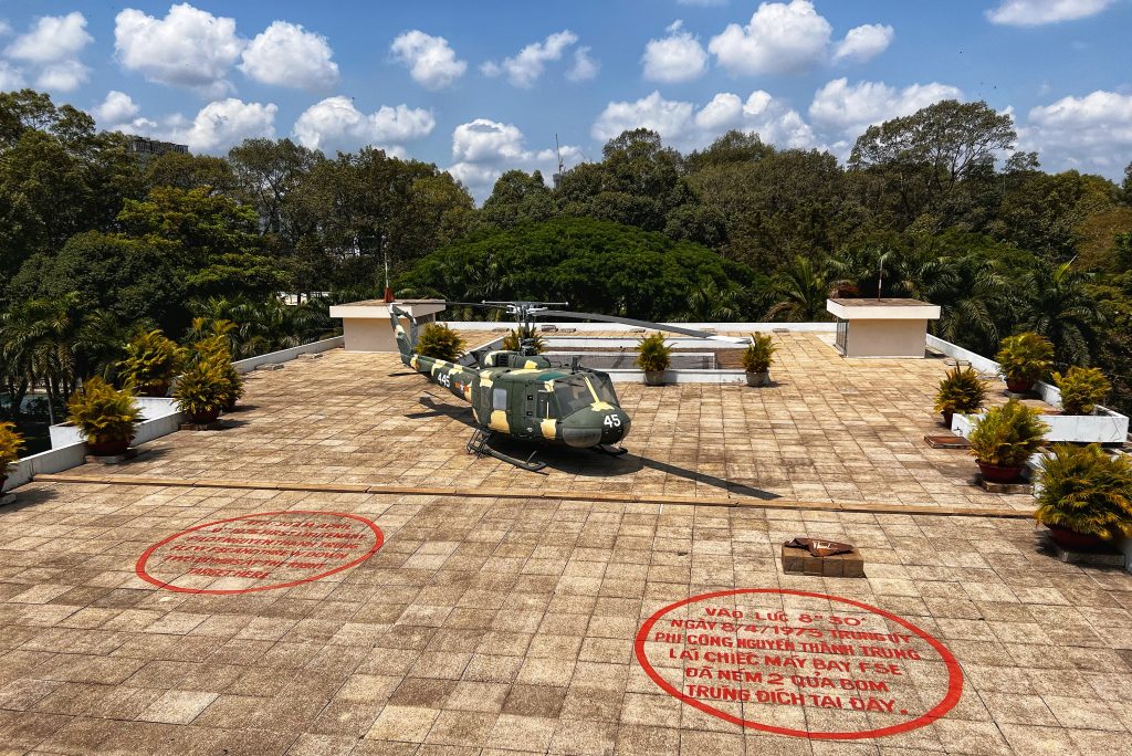 After leaving the big market, we walked to our next important destination – an iconic location of the fall of Saigon. It’s the photo below, which could be one of the most famous photo of Vietnam in the world. This photo was taken on April 29, 1975, on the eve of the fall of Saigon (now Ho Chi Minh City), as Vietnamese people tried to board US evacuating helicopters. The helicopter was parked on the roof of a U.S. Central Intelligence Agency (CIA) residential building in Saigon, located at 22 Gia Long Street. The people in the photo were desperately trying to get on board, hoping to escape Vietnam, becoming a symbolic scene of the collapse of the South Vietnamese regime and the end of the Vietnam War.