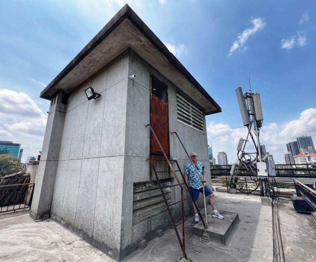 就是这栋楼的顶楼 – It’s the rooftop of this building.