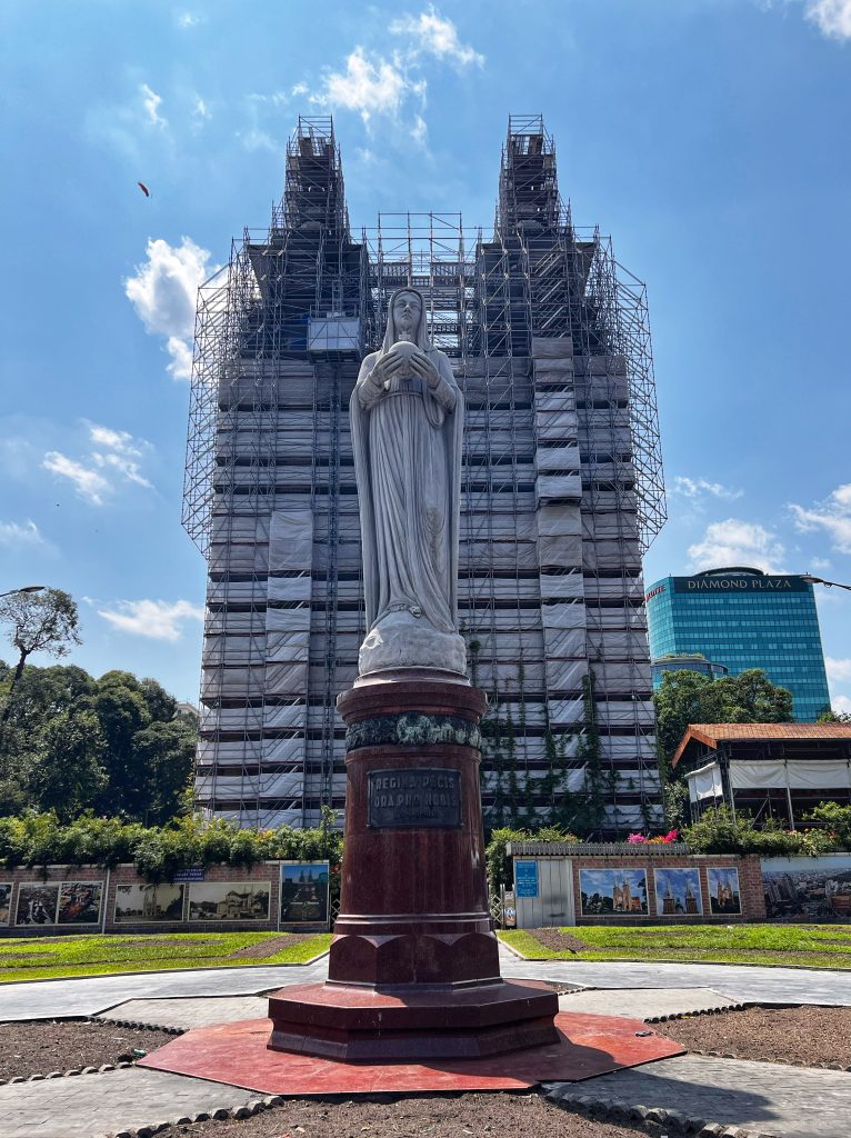 The Saigon Notre-Dame Cathedral Basilica, nicknamed the Red Church, and the Saigon Central Post Office were nearby, so we took the opportunity to visit them as well. Unfortunately, the Red Church was under renovation and completely closed to the public.