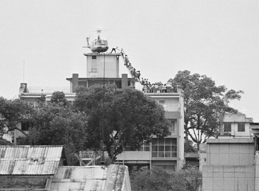 由荷兰摄影师休伯特·范·埃斯(Hubert van Es)拍摄,经常被误认为是从美国大使馆的屋顶拍摄的。然而实际上,它是在距离大使馆几个街区远的地方拍摄的。这张照片成为越南战争和西贡沦陷最令人记忆犹新的图像之一,广泛传播于世界各地,象征着战争的混乱和绝望。
