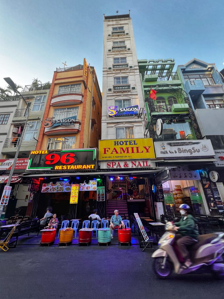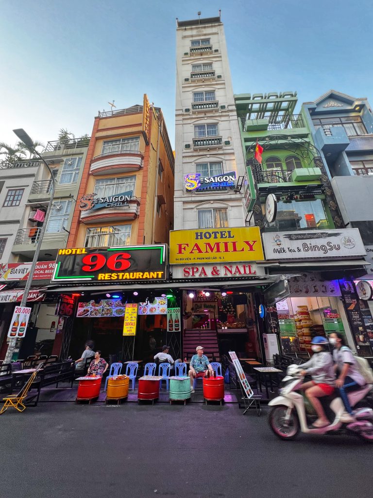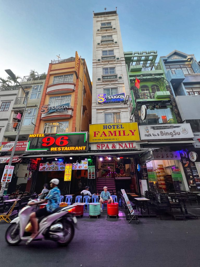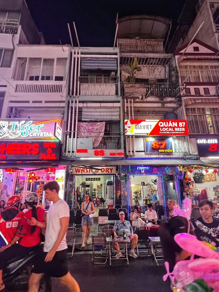 After returning to the hotel in the afternoon to rest and recharge, we headed back to Bui Vien Walking Street to do one of our favorite things: have a beer and people-watch. By the time evening arrived, this place had truly turned into a mad house. Frenzied music, dancers at the entrances of bars, bar staff competing for customers, an endless stream of pedestrians, tourists and motorcycles, beggars, vendors selling various small items, vendors with young children, shoe shiners, and beggars performing fire-breathing shows by spraying gasoline from their mouths – this scene felt hysterically crazy, with everyone looking for a way to survive.