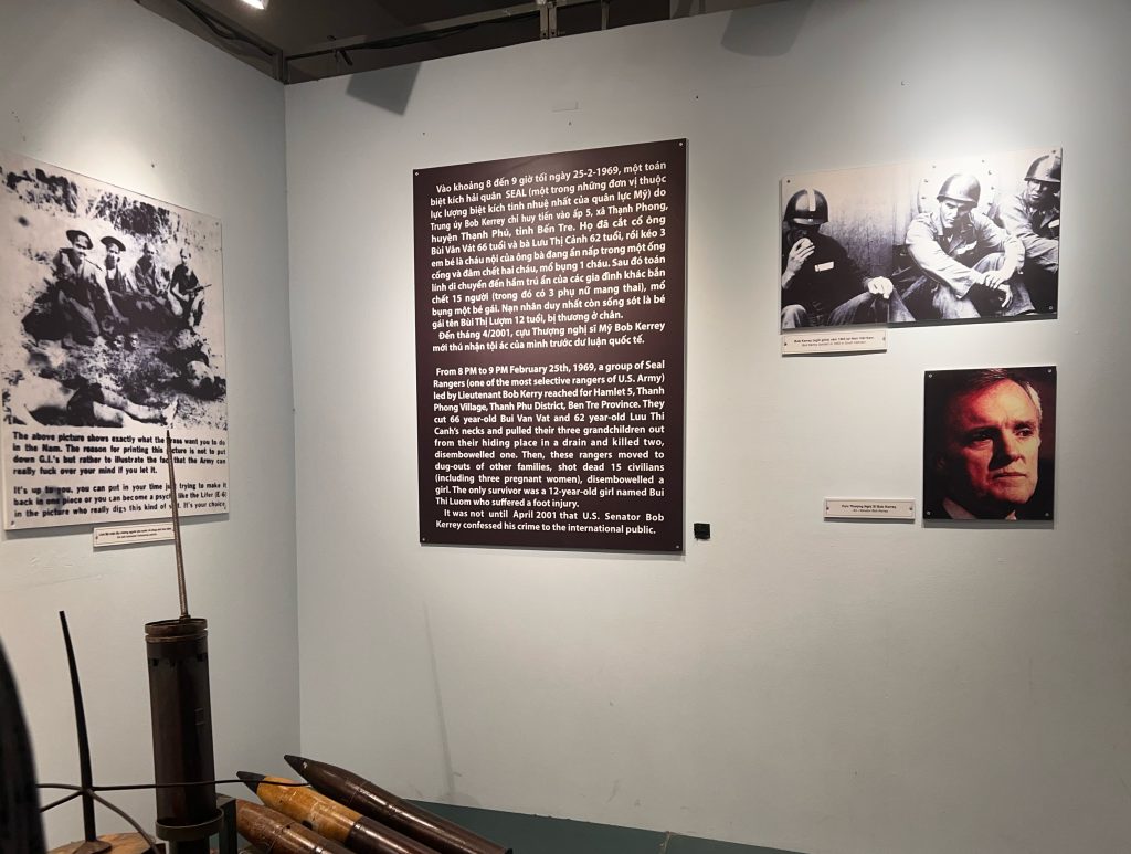 这次参观让我首次系统了解了越南的历史。以前在学校学习历史时,接触的关于越南的内容仅限于涉及中国的部分,比如美国对越南的侵略战争中,中国对越南人民抗美救国战争提供的军事援助。那时我对战争没有太深的感受,只是按照教育的要求去仇恨西方列强。然而,今天我不仅学到了越南的历史,还真切地见证了战争对平民的毁灭性影响和长期后果。美国在这场战争中所犯的错误无疑是可耻且不可饶恕的,但看到当今越南人民对美国人展现出的友好、积极和开放态度,这种复杂的情感让人感到奇妙。我从小接受的教育是要仇恨日本人,原因是南京大屠杀等历史事件,这种情绪一直还是延续到今天的年轻一代。这个博物馆很好,唯一的问题就是没有空调,每个展厅里只有几个风扇,所以参观了一会儿便汗流浃背。
