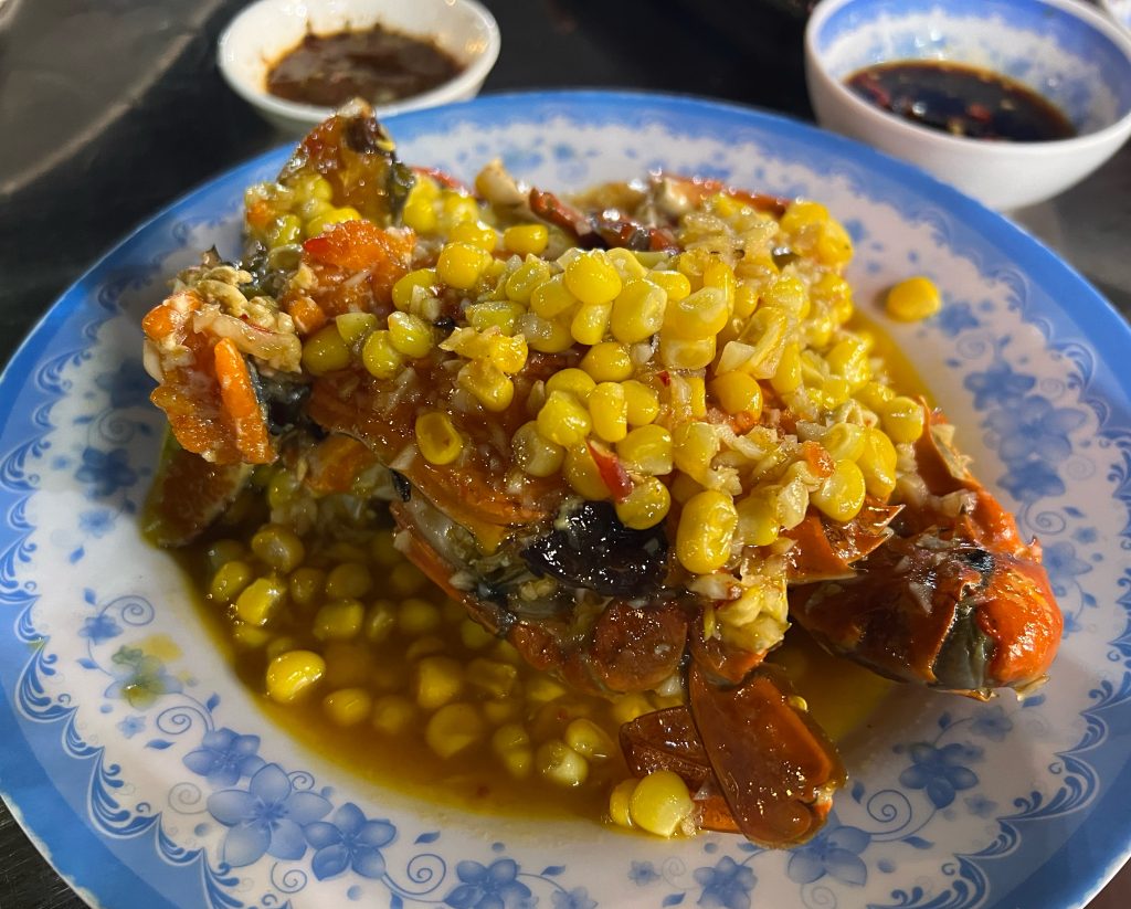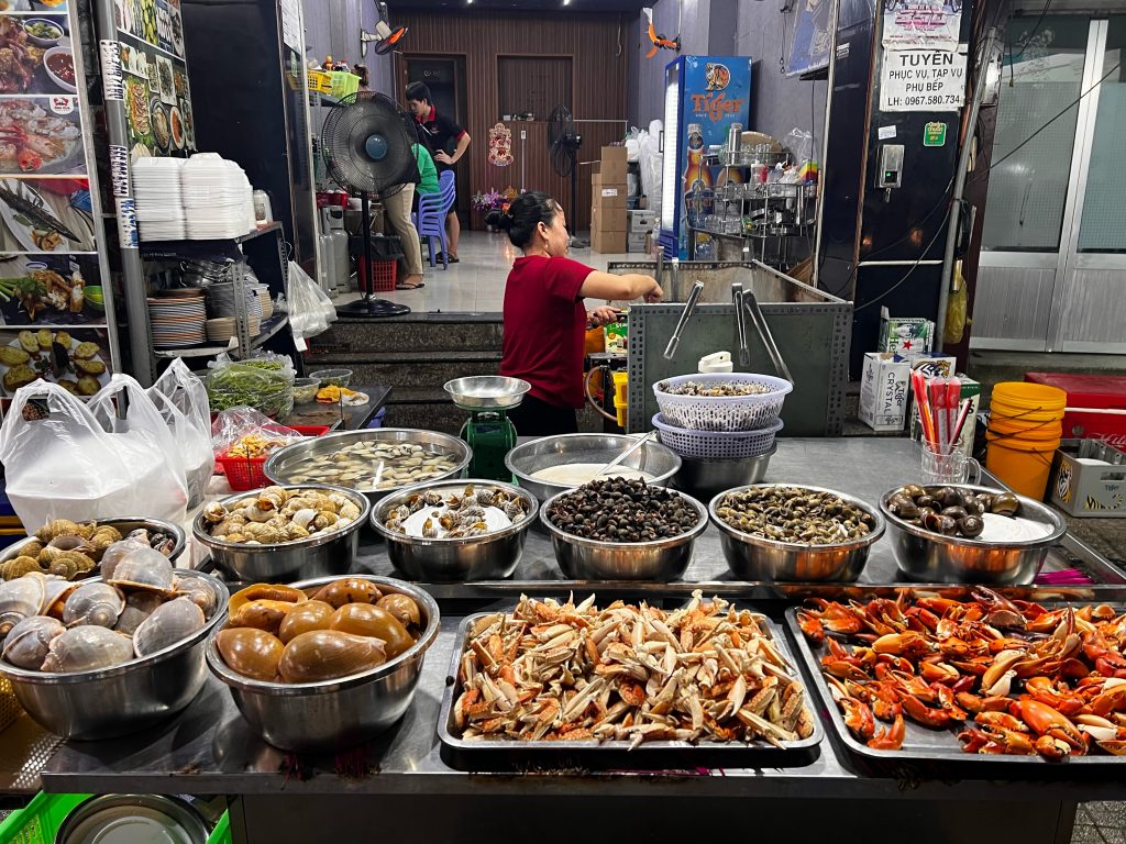 For dinner, we found a very authentic seafood restaurant, Ong Cua, and I finally had my crab! This dinner included five dishes and cost a total of 961,000 Vietnamese dong, equivalent to about 38 US dollars. The prices here are simply unbelievable. This kind of affordable and delicious dining experience allows people to enjoy the food while also experiencing the charm of local life in Vietnam.