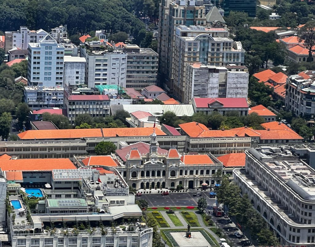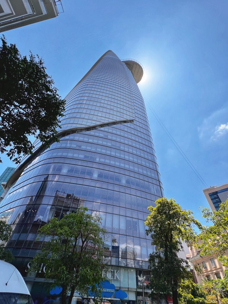 This morning, we went to the Saigon Skydeck on the 49th floor of the Bitexco Financial Tower. The Bitexco Financial Tower is one of the landmark buildings in Ho Chi Minh City, standing 262 meters tall with 68 floors, making it one of the tallest buildings in Vietnam.