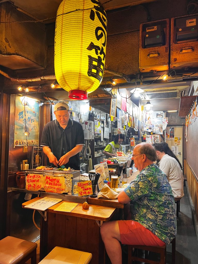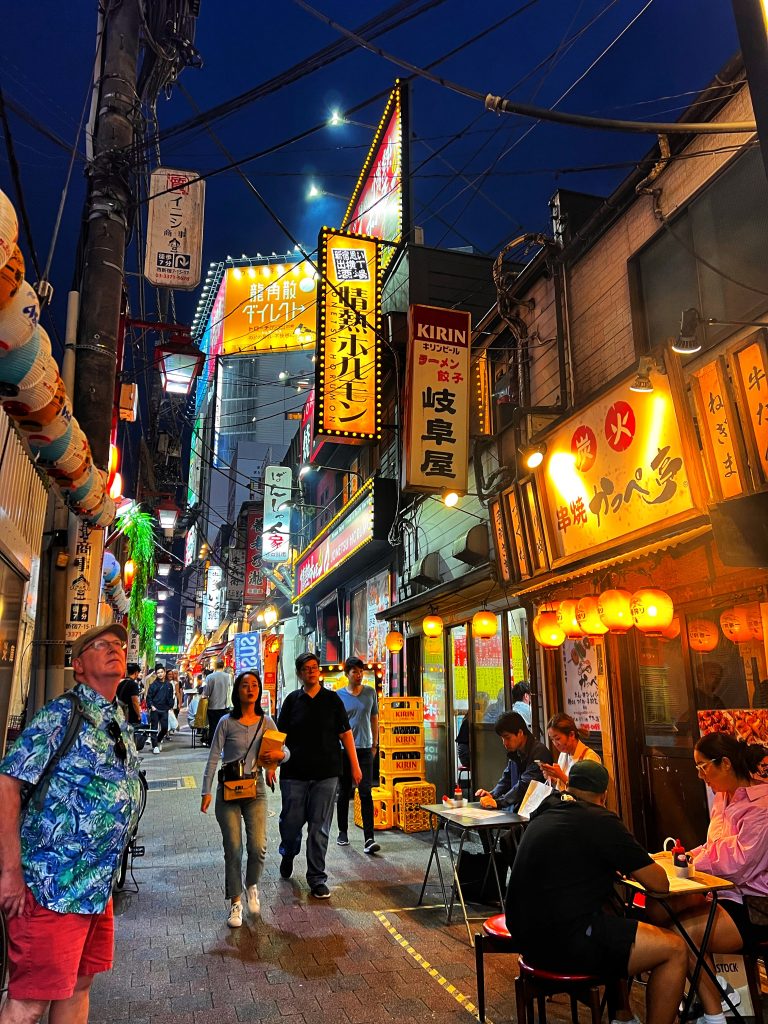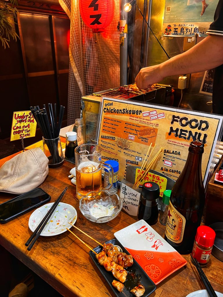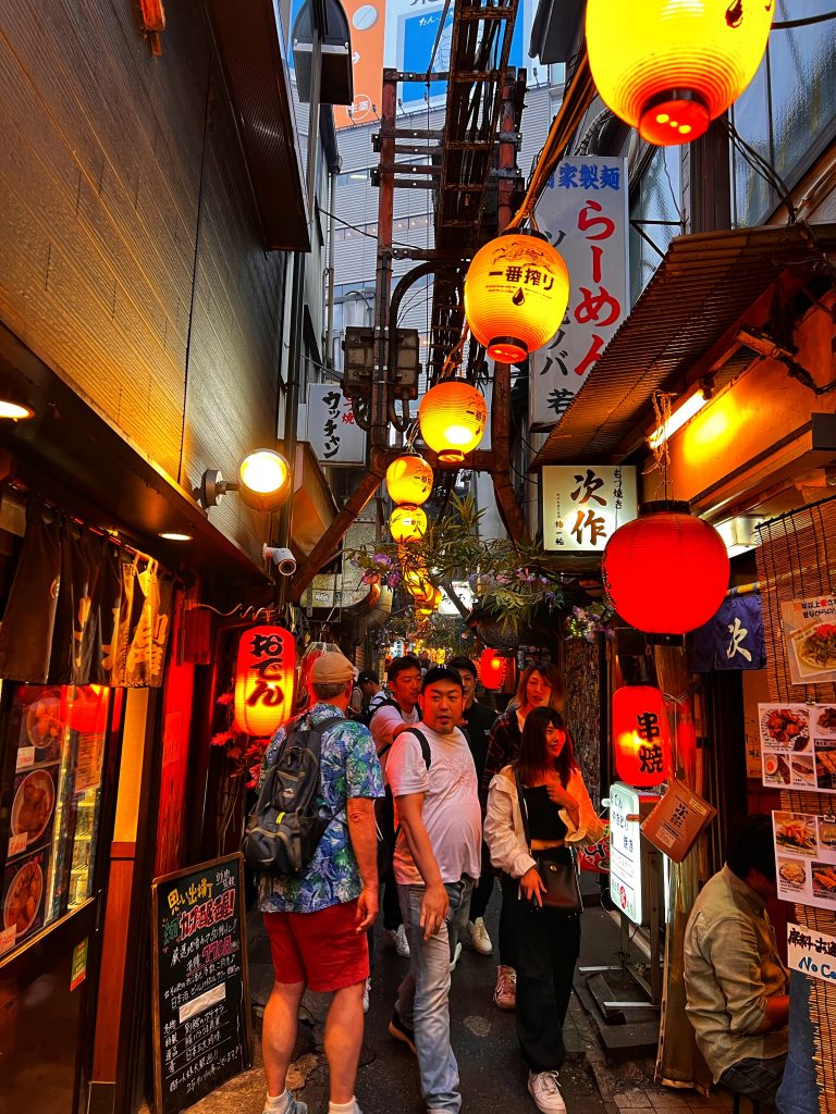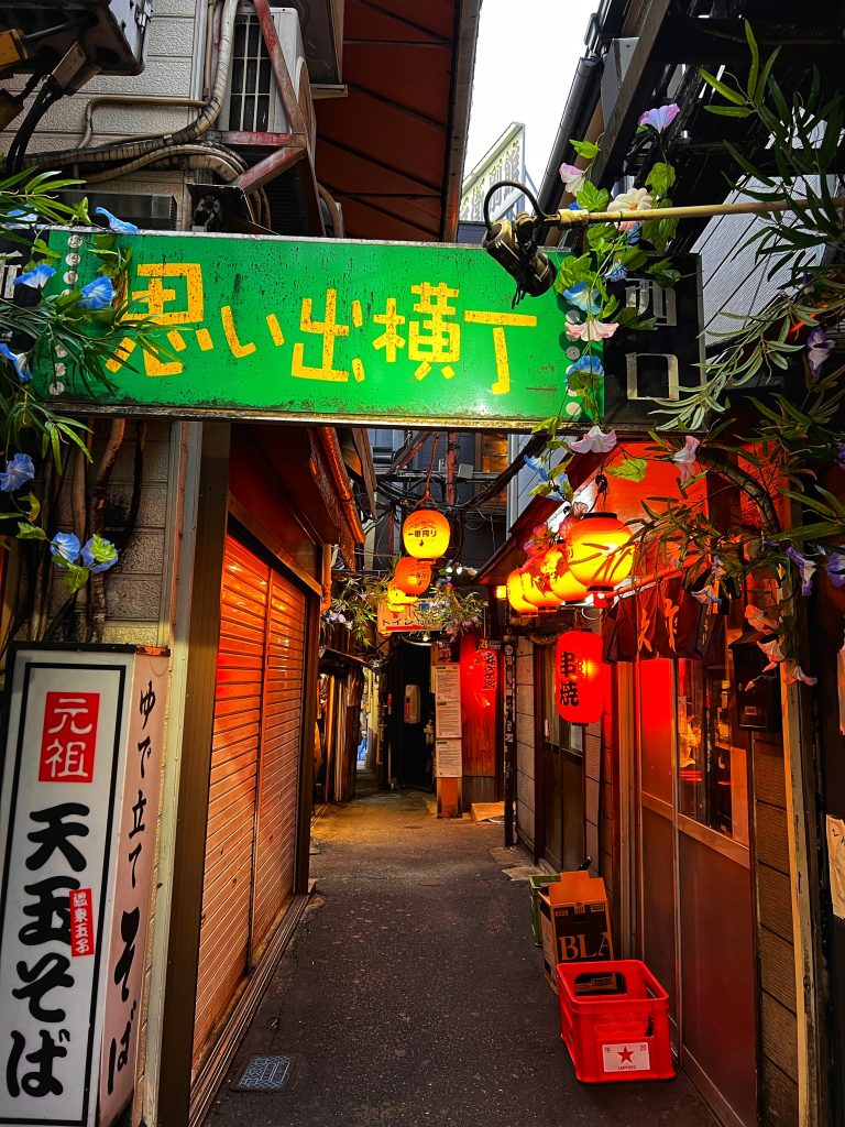For dinner, We once again felt the strong nostalgic atmosphere in the old alleys, this one called Omoide Yokocho, translated to “Memory Alley” not far from the hotel. Walking through Memory Alley, surrounded by old wooden buildings and narrow streets, the dim lights illuminate the alley, creating a warm and friendly atmosphere, filled with the aroma of barbecued fried meats and fish – we salivate involuntarily as we walk through.
