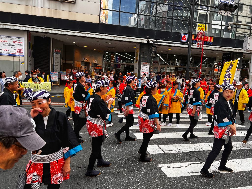 当时正好赶上了这里举办的涩谷鹿儿岛小原祭(Shibuya Kagoshima Ohara Matsuri)是一个大型的庆典活动。庆祝鹿儿岛县和涩谷区之间的友好关系,来自鹿儿岛的各个团队表演鹿儿岛舞蹈,舞者身着传统的服装,跳跃、转动,伴随着欢快的鼓点和乐器,据说是展现独特的鹿儿岛风情。