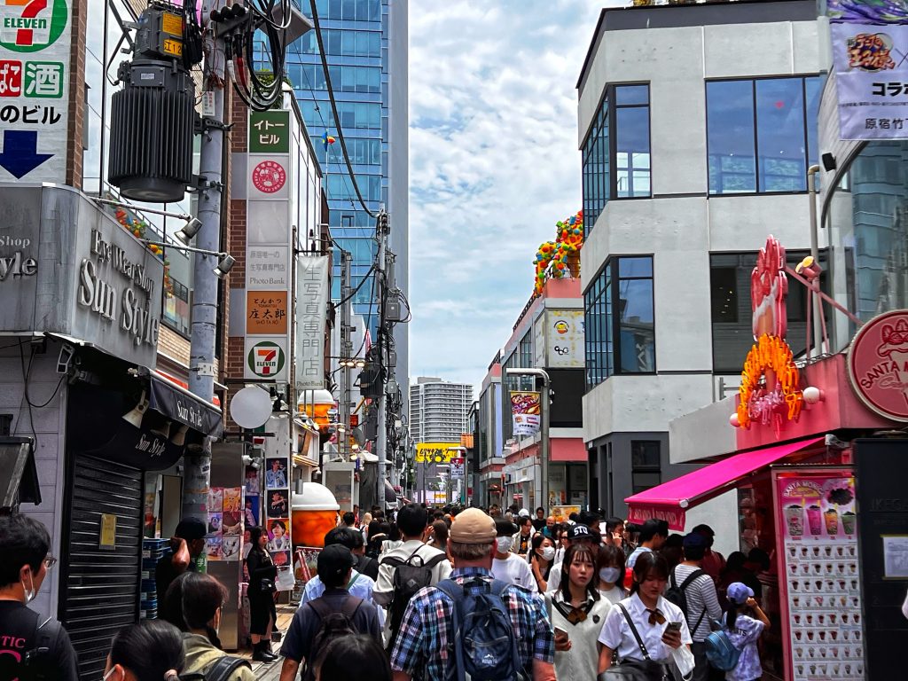 步行40分钟到了竹下通步行街,这里是一条短小的步行街,很多销售着潮流服饰、饰品和小玩意的小店,当然也是人流如织。
