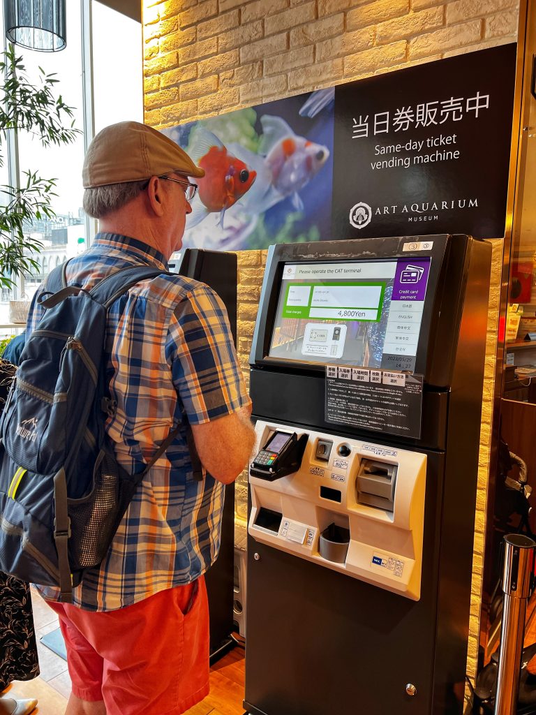 After lunch, we left the noodle shop and found that it was raining again. Fortunately, the second stop we planned was the Tokyo Art Aquarium. It took about 20 minutes to get to the aquarium by subway, which is located in a large shopping mall. This is a very unique aquarium with only goldfish in it, and the displays are based on the ideas and concepts of Japanese artist Hidetomo Kimura who combines traditional goldfish farming with art. He has taken traditional goldfish viewing to a whole new level, creating unique and stunning art exhibitions through light, music and art.
