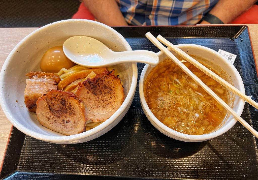 After searching for a while near Sensoji Temple, we found a noodle restaurant, which was a dipping noodle place that I wanted to try. Ours were both very good, with firm noodles and a rich thick dipping sauce.