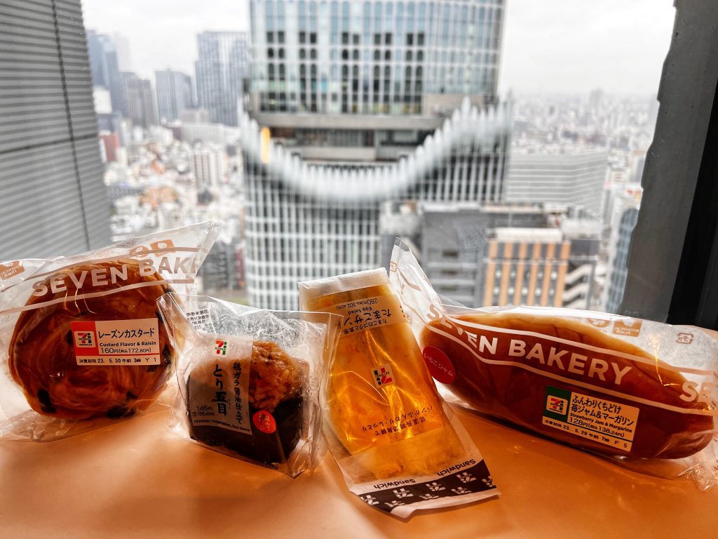 When I woke up this morning, it was raining, so I just took the time to record the actions of the past two days. We bought breakfast from 7-11 last night again, and as before someone bought an egg salad sandwich, and I bought a rice ball with bread.