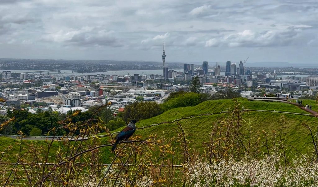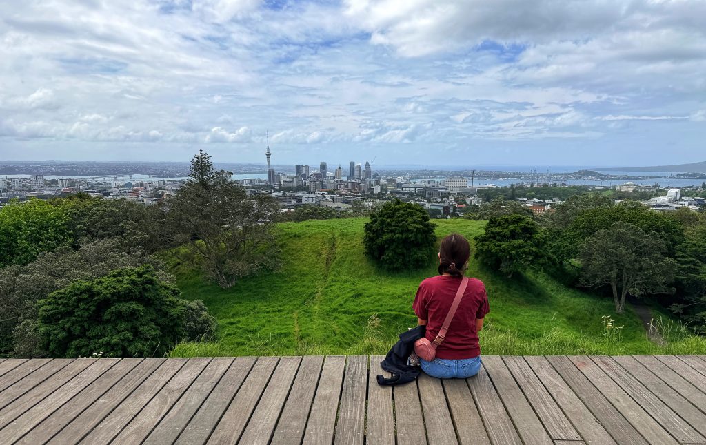 山顶视野极佳,沿着步道绕火山口走一圈,便能 360 度俯瞰整个奥克兰市区、海港与天空塔。微风吹过,脚下是陡峭的火山口,远处城市与大海相映,站在顶端有种把整个奥克兰尽收眼底的震撼感,难怪这里是最受欢迎的观景点之一。